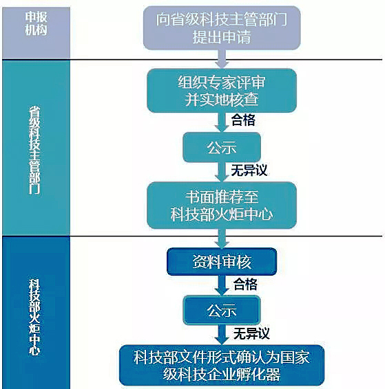 新辦法重新規(guī)范了國家級科技企業(yè)孵化器的申報和管理,以下為具體申報流程圖:
