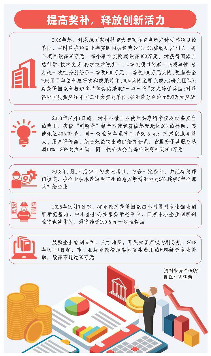 振興實體經(jīng)濟,實現(xiàn)動能轉(zhuǎn)換,創(chuàng)新是第一動力。“45條”大力鼓勵科技創(chuàng)新,讓科研人員拿雙份獎金、走綠色通道。