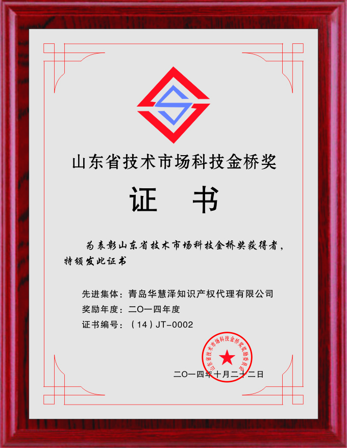 山東省技術(shù)市場(chǎng)科技金橋獎(jiǎng)先進(jìn)集體