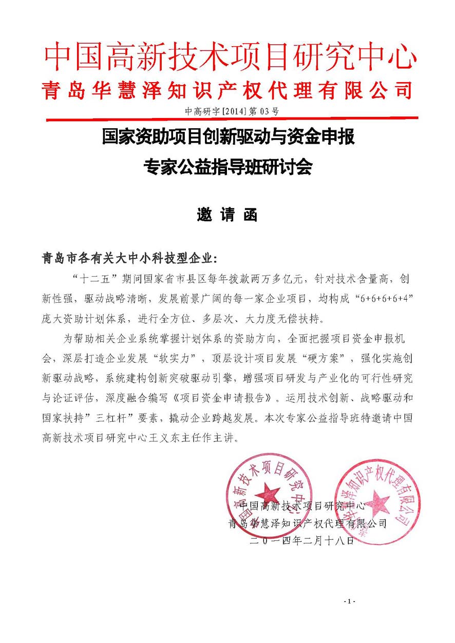 主辦單位:中國高新技術(shù)項(xiàng)目研究中心、青島華慧澤知識產(chǎn)權(quán)代理有限公司