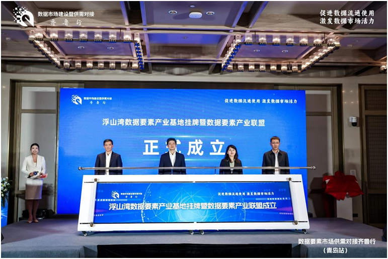 隨后,市南區(qū)委書記王鋒、市大數(shù)據(jù)局局長張艷、青島華通集團(tuán)董事長姜魯青、海諾公司董事長李大濤參加了浮山灣數(shù)據(jù)要素產(chǎn)業(yè)基地掛牌暨數(shù)據(jù)要素產(chǎn)業(yè)聯(lián)盟成立儀式。由浪潮數(shù)據(jù)要素、格蘭德、北方健康醫(yī)療、海信網(wǎng)絡(luò)科技等重點(diǎn)數(shù)據(jù)企業(yè)組成的數(shù)據(jù)要素產(chǎn)業(yè)聯(lián)盟,將在市南區(qū)大數(shù)據(jù)局的推動(dòng)下,整合聯(lián)盟成員在數(shù)據(jù)采集、治理、應(yīng)用、交易等領(lǐng)域的差異化能力,共同構(gòu)建起覆蓋“數(shù)據(jù)供給-技術(shù)賦能-場景落地”的全鏈條生態(tài)體系。浮山灣數(shù)據(jù)要素產(chǎn)業(yè)基地正式掛牌成立,更代表市南區(qū)數(shù)據(jù)產(chǎn)業(yè)集聚發(fā)展邁出重要一步,基地占地面積9.97萬平方米,目前已入駐企業(yè)98家,包括浪潮數(shù)據(jù)要素、青島蒼穹數(shù)碼等多家頭部企業(yè),從業(yè)人員約7700人;園區(qū)圍繞綠色低碳的發(fā)展理念,搭建“腦機(jī)”超級(jí)管理系統(tǒng)平臺(tái),整合傳統(tǒng)平臺(tái)28個(gè),實(shí)現(xiàn)園區(qū)數(shù)字化、智能化運(yùn)營。