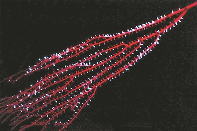 八放珊瑚是一種進化史古老且經(jīng)常發(fā)光的動物群,包括軟珊瑚、海扇和海筆。和硬珊瑚一樣,八放珊瑚是微小的群居水螅體,它們分泌出一種物質(zhì)結(jié)構(gòu)來作為“避難所”。但與它們石質(zhì)親戚不同的是,這種結(jié)構(gòu)通常是軟的。八放珊瑚通常只有在受到碰撞或其他干擾時才會發(fā)光。