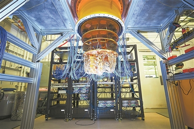 新成果有望使量子計(jì)算機(jī)變得更實(shí)用。圖為安裝在低溫室的谷歌量子計(jì)算機(jī)。圖片來源:物理學(xué)家組織網(wǎng)
