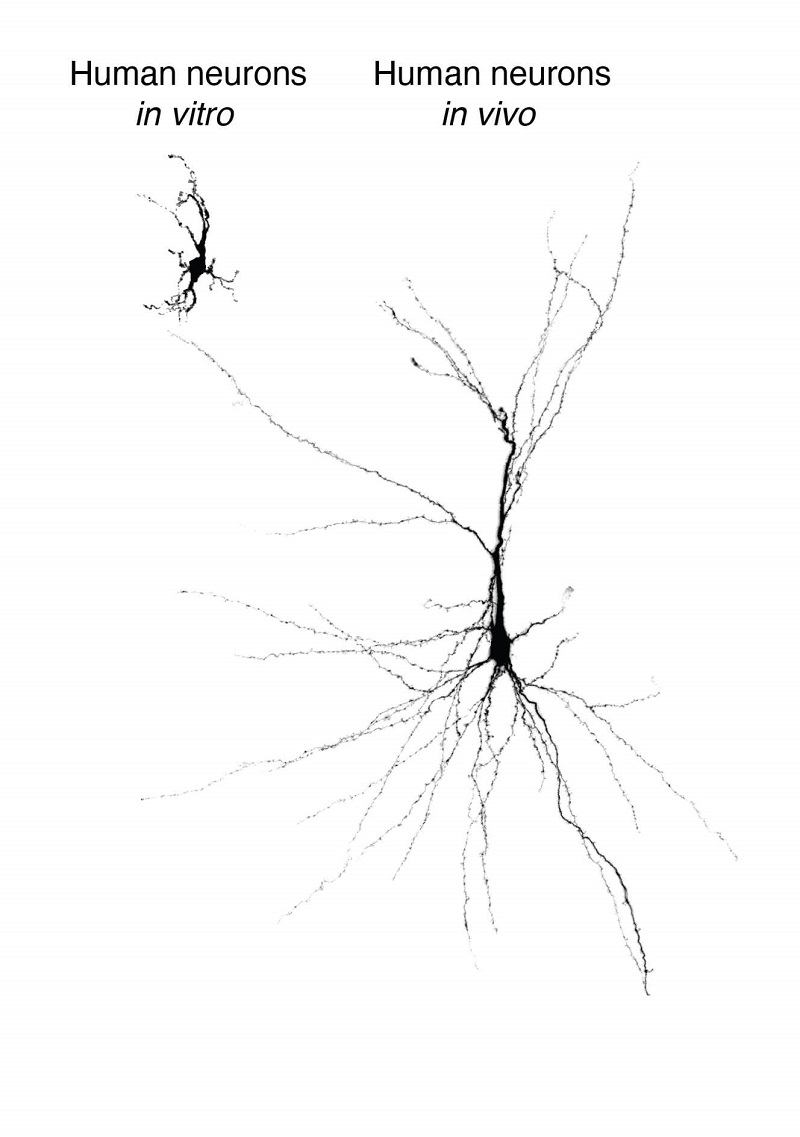 來自干細(xì)胞的重建人類神經(jīng)元,在培養(yǎng)皿中維系并移植到大鼠大腦皮層中。