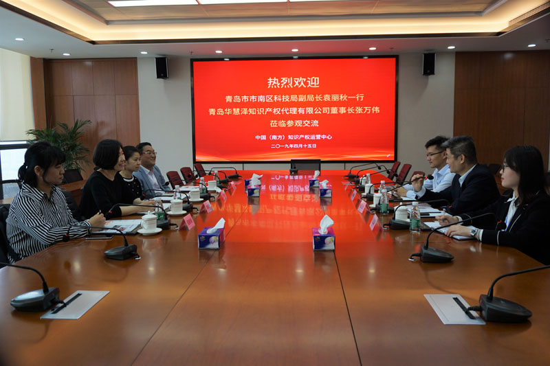 2019年4月15日,青島市市南區(qū)科技局副局長袁麗秋一行到中國(南方)知識產(chǎn)權(quán)運營中心參觀調(diào)研,并與南方中心張衛(wèi)光副總裁等座談交流,青島華慧澤知識產(chǎn)權(quán)代理有限公司董事長張萬偉一同參加。