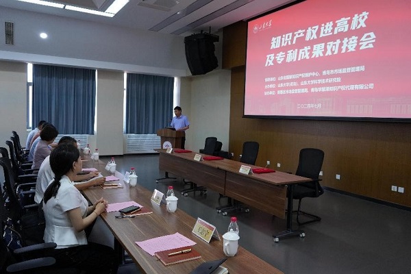 7月10日,由山東省國家知識產(chǎn)權(quán)保護(hù)中心、青島市市場監(jiān)督管理局指導(dǎo),山東大學(xué)(青島)、山東大學(xué)科學(xué)技術(shù)研究院主辦,青島市即墨區(qū)市場監(jiān)督管理局、青島華慧澤知識產(chǎn)權(quán)代理有限公司協(xié)辦的“知識產(chǎn)權(quán)進(jìn)高校暨專利成果對接會”在山東大學(xué)青島校區(qū)成功舉辦。會前,山東大學(xué)校長李術(shù)才與青島市市場監(jiān)督管理局局長張?jiān)佈銜?,親切交談。青島校區(qū)黨工委副書記宋作標(biāo)致歡迎辭,青島市市場監(jiān)督管理局局長張?jiān)佈恪⑸綎|省國家知識產(chǎn)權(quán)保護(hù)中心副主任尹強(qiáng)民出席活動(dòng)并致辭。青島市市場監(jiān)督管理局知識產(chǎn)權(quán)促進(jìn)處處長欒華、知識產(chǎn)權(quán)保護(hù)處副處長安鍇,國家知識產(chǎn)權(quán)局戰(zhàn)略規(guī)劃司二級主任科員蘇強(qiáng),山東省國家知識產(chǎn)權(quán)保護(hù)中心預(yù)審一部部長牟若楠,青島市即墨區(qū)市場監(jiān)督管理局副局長刁艷艷、知識產(chǎn)權(quán)科科長喬杰先,青島華慧澤知識產(chǎn)權(quán)代理有限公司董事長張萬偉出席,青島校區(qū)科研管理辦公室副主任兼科學(xué)技術(shù)研究院副院長王志寧主持活動(dòng)。山東大學(xué)科學(xué)技術(shù)研究院、技術(shù)轉(zhuǎn)移中心、青島校區(qū)科研管理辦公室負(fù)責(zé)人及相關(guān)人員,部分學(xué)院領(lǐng)導(dǎo)及專家代表,創(chuàng)新型企業(yè)負(fù)責(zé)人,共80余人參加活動(dòng)。