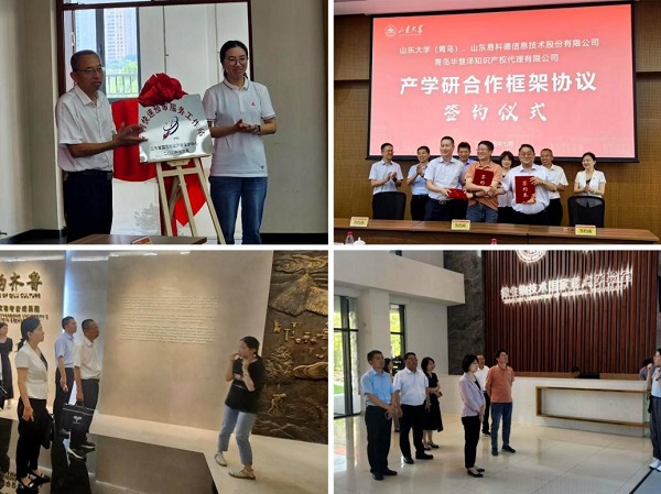 隨后,舉行了專利快速預(yù)審服務(wù)工作站揭牌儀式、產(chǎn)學(xué)研合作框架協(xié)議簽約儀式等活動(dòng)。青島市市場監(jiān)督管理局知識產(chǎn)權(quán)促進(jìn)處處長欒華、山東省國家知識產(chǎn)權(quán)保護(hù)中心預(yù)審一部部長牟若楠、青島華慧澤專利代理事務(wù)所合伙人賀敬虹、國家知識產(chǎn)權(quán)局戰(zhàn)略規(guī)劃司蘇強(qiáng)圍繞國家及山東省、青島市知識產(chǎn)權(quán)相關(guān)政策、高價(jià)值專利培育進(jìn)行了宣講,山東大學(xué)計(jì)算機(jī)科學(xué)與技術(shù)學(xué)院宣東教授團(tuán)隊(duì)陳竹軍推介了人機(jī)智能系統(tǒng)研究專利成果。