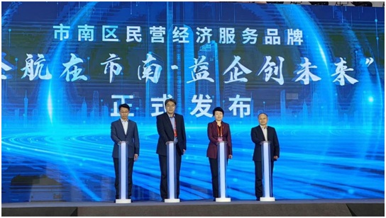 活動中,青島市民營經(jīng)濟發(fā)展局黨組成員、副局長江長海,青島市工商聯(lián)黨組成員、副主席周雪燕,市南區(qū)政府黨組成員、副區(qū)長張軍,市南區(qū)政協(xié)副主席劉樹國共同按下“光柱”,發(fā)布市南區(qū)民營經(jīng)濟服務(wù)品牌“企航在市南•益企創(chuàng)未來”。數(shù)字人“南南”進行品牌介紹,市南區(qū)將圍繞“企航在市南•益企創(chuàng)未來”一個品牌,實施“決勝新賽道”“金專鑄企”“益企面對面”“企明星計劃”“企航計劃”“金橋計劃”六大主題行動,持續(xù)優(yōu)化企業(yè)發(fā)展生態(tài),推動市南區(qū)民營經(jīng)濟高質(zhì)量發(fā)展。