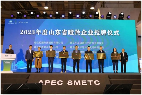 現(xiàn)場,為四家2023年度國家級專精特新“小巨人”企業(yè)、七家山東省瞪羚企業(yè)和青島市民營經(jīng)濟高質(zhì)量發(fā)展路演中心基地授牌,并為16名市南區(qū)民營企業(yè)智庫專家團專家代表頒發(fā)聘書。松立控股集團股份有限公司、青島華正信息技術(shù)股份有限公司、聯(lián)潤翔(青島)紡織科技有限公司三家企業(yè)借力揚帆,進行“融通行”專精特新企業(yè)路演,宣傳推廣創(chuàng)新項目,進一步開拓企業(yè)市場,同外地客商探討合作的可能性。