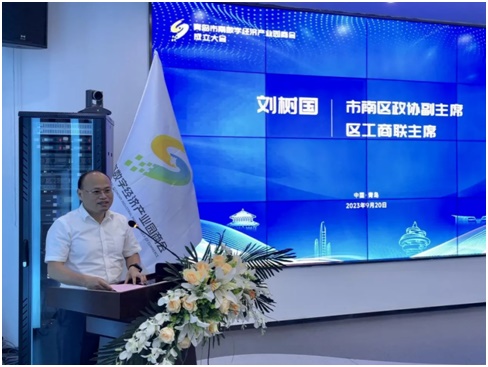 9月20日,青島市南數(shù)字經(jīng)濟(jì)產(chǎn)業(yè)園商會成立大會隆重召開。青島市工商聯(lián)黨組成員、副主席張宣付,市南區(qū)政協(xié)副主席、區(qū)工商聯(lián)主席劉樹國,區(qū)工商聯(lián)、金門路街道辦事處主要領(lǐng)導(dǎo),區(qū)紀(jì)委監(jiān)委、區(qū)科技局、區(qū)工信局、區(qū)民政局、區(qū)行政審批局、海諾公司等單位有關(guān)領(lǐng)導(dǎo)及青島市南數(shù)字經(jīng)濟(jì)產(chǎn)業(yè)園商會會員單位代表等30余人出席大會。青島市南數(shù)字經(jīng)濟(jì)產(chǎn)業(yè)園商會的正式成立,將開啟市南區(qū)數(shù)字經(jīng)濟(jì)產(chǎn)業(yè)發(fā)展的新征程。