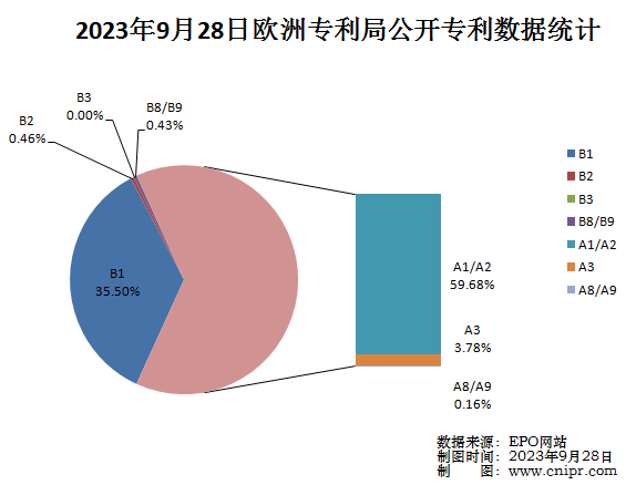 摘要:2023年9月28日,歐洲專利局(EPO)公開A類以及B類專利6299件。