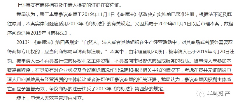 實務中,看到引證商標權(quán)利人已注銷,一般在復審的時候會選擇對引證商標提撤三,這樣引證商標由于沒有提供商標使用證據(jù)被撤銷,復審成功,但最近學習案例的時候,發(fā)現(xiàn)除了這個方法外,還可以對引證商標提出無效宣告。