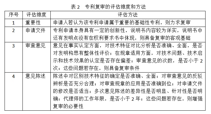 做好復(fù)審評估。結(jié)合表2,可以從以下四個維度對專利復(fù)審進行評估。評估的目的是為了能夠更加客觀的認(rèn)識前期被駁回專利的實際情況,讓專利復(fù)審具有客觀依據(jù)和可操作性,減少和避免專利復(fù)審決策的盲目性和盲從性,因此可以成為申請人實施專利復(fù)審的流程要求,也可以是專利代理機構(gòu)委案復(fù)審的前置程序。復(fù)審評估通常需要計入到復(fù)審成本中。