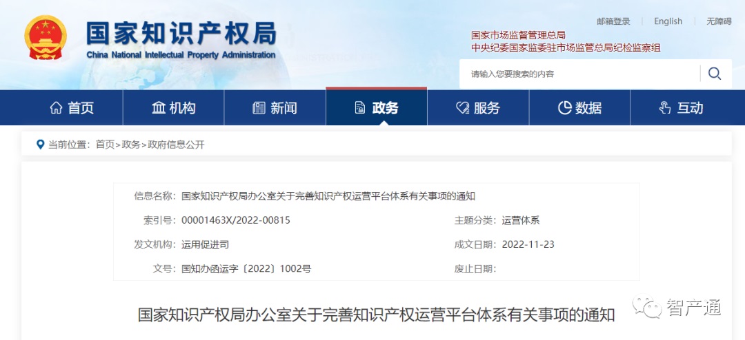 為深入貫徹落實黨的二十大精神,推進(jìn)落實黨中央、國務(wù)院印發(fā)的《知識產(chǎn)權(quán)強(qiáng)國建設(shè)綱要(2021—2035年)》和國務(wù)院印發(fā)的《“十四五”國家知識產(chǎn)權(quán)保護(hù)和運用規(guī)劃》,將中辦、國辦印發(fā)的《建設(shè)高標(biāo)準(zhǔn)市場體系行動方案》關(guān)于“建設(shè)國家知識產(chǎn)權(quán)和科技成果產(chǎn)權(quán)交易機(jī)構(gòu)”部署落實落地,按照《國家知識產(chǎn)權(quán)局關(guān)于促進(jìn)和規(guī)范知識產(chǎn)權(quán)運營工作的通知》(國知發(fā)運字〔2021〕22號)要求,推進(jìn)實施知識產(chǎn)權(quán)運營體系建設(shè)工程,在前期工作基礎(chǔ)上,進(jìn)一步完善知識產(chǎn)權(quán)運營平臺體系,現(xiàn)將有關(guān)事項通知如下: