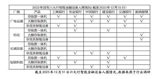 網(wǎng)點(diǎn)總量趨于穩(wěn)定、政策刺激等因素疊加,帶來(lái)了智能金融設(shè)備市場(chǎng)的穩(wěn)中向好。據(jù)中國(guó)人民銀行2023年金融統(tǒng)計(jì)數(shù)據(jù)報(bào)告顯示,流通中貨幣(M0)余額保持增長(zhǎng),表明社會(huì)對(duì)現(xiàn)金的需求依然較旺盛,且隨著銀行網(wǎng)點(diǎn)進(jìn)一步降本增效和生態(tài)融合,柜面、跨界業(yè)務(wù)加速向智能設(shè)備遷移或融合,非現(xiàn)設(shè)備使用率迅速提高,因此作為現(xiàn)金流通和網(wǎng)點(diǎn)自助服務(wù)的主要載體,智能金融設(shè)備的必要性和重要性毋庸置疑。與此同時(shí),設(shè)備分布不平衡的問題仍然突出,一、二線城市部分網(wǎng)點(diǎn)設(shè)備使用率低而部分縣域卻未完全覆蓋,各大銀行為更好地滿足客戶需求,強(qiáng)調(diào)了在自助設(shè)備上的投入,如建設(shè)銀行在近年年報(bào)中均提到保證客流量大的城區(qū)和縣域網(wǎng)點(diǎn)自助設(shè)備投入。市場(chǎng)實(shí)際表現(xiàn)是最有力的證明,市場(chǎng)調(diào)研數(shù)據(jù)顯示,2023年智能金融設(shè)備總采購(gòu)量同比略有增長(zhǎng),表明各大銀行在上述領(lǐng)域的投入仍然保持較高的水平。展望2024年,新國(guó)標(biāo)、信創(chuàng)等政策持續(xù)刺激替換需求,且新設(shè)網(wǎng)點(diǎn)和網(wǎng)點(diǎn)優(yōu)化產(chǎn)生新需求,整個(gè)智能金融設(shè)備市場(chǎng)在未來(lái)3年仍有可觀的增量空間。