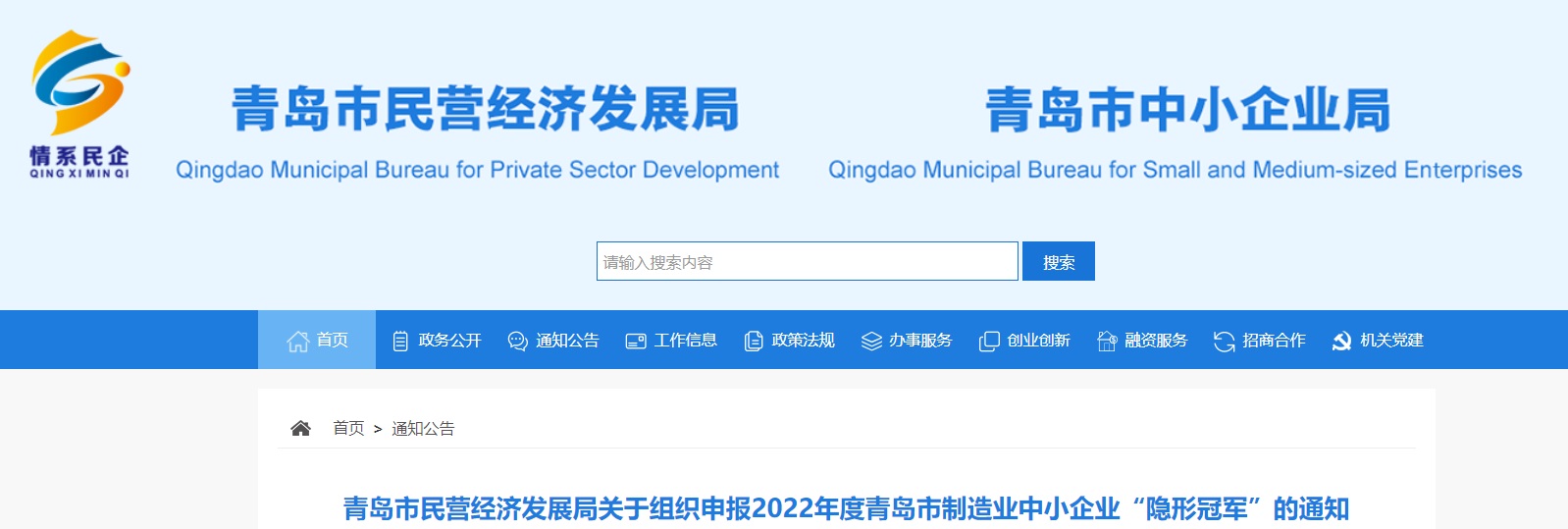 為深入推進實體經(jīng)濟振興,引導中小企業(yè)以“專精特新”為路徑、以“隱形冠軍”為目標,專注創(chuàng)新和產(chǎn)品質(zhì)量提升,增強核心競爭力,實現(xiàn)高質(zhì)量發(fā)展,根據(jù)《青島市人民政府印發(fā)關于貫徹落實省支持八大發(fā)展戰(zhàn)略財政政策加快重點產(chǎn)業(yè)高質(zhì)量發(fā)展若干政策的通知》(青政字〔2021〕21號)、《青島市民營經(jīng)濟發(fā)展局 青島市財政局關于印發(fā)<青島市培育和獎勵隱形冠軍企業(yè)、專精特新“小巨人”企業(yè)、瞪羚企業(yè)、獨角獸企業(yè)實施方案(2019-2022年)>的通知》(青民發(fā)字〔2019〕36號),我局決定開展2022年度青島市制造業(yè)中小企業(yè)“隱形冠軍”申報工作。現(xiàn)將有關事項通知如下: