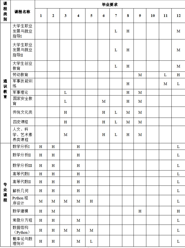 数学分析、高等代数、解析几何、数学建模、常微分方程、Python程序设计、概率论与数理统计、数据结构(Python)、Hadoop大数据技术、分布式数据库原理与应用、数据仓库与数据挖掘技术、框架编程(Python)。