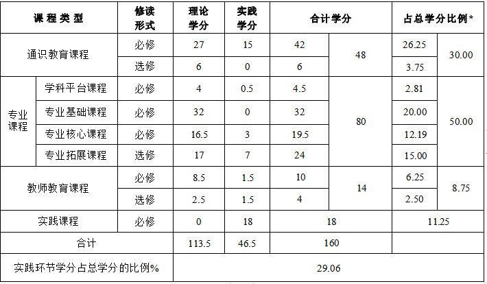 5. 毕业(教育)实习和毕业设计(论文)的学分按照《国标》和专业认证的要求执行;如果无 明确要求,建议按照毕业(教育)实习 8 学分和毕业设计(论文)8 学分执行,若调整,需单独提 交调整说明。