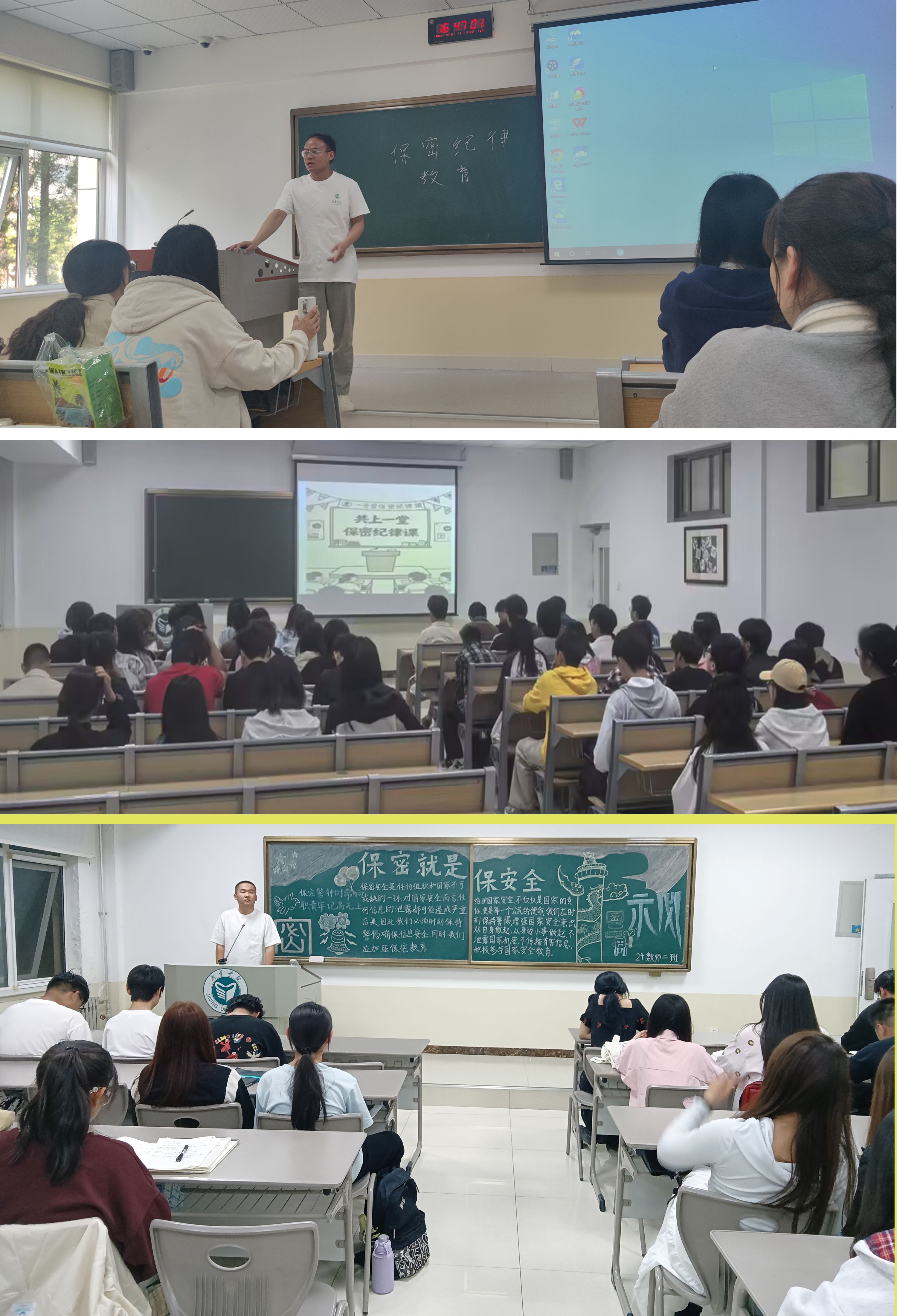 2、组织开展“共上一堂保密纪律课”活动。以班级为单位开展保密教育主题班会,通过播放保密警示教育短片、解读《保密法》核心条款,结合学生日常可能接触的涉密场景(如网络发言、文件传递等),深入浅出地阐释“保密无小事”的内涵,提升大家对保密工作重要性的认知和主动防范意识。
