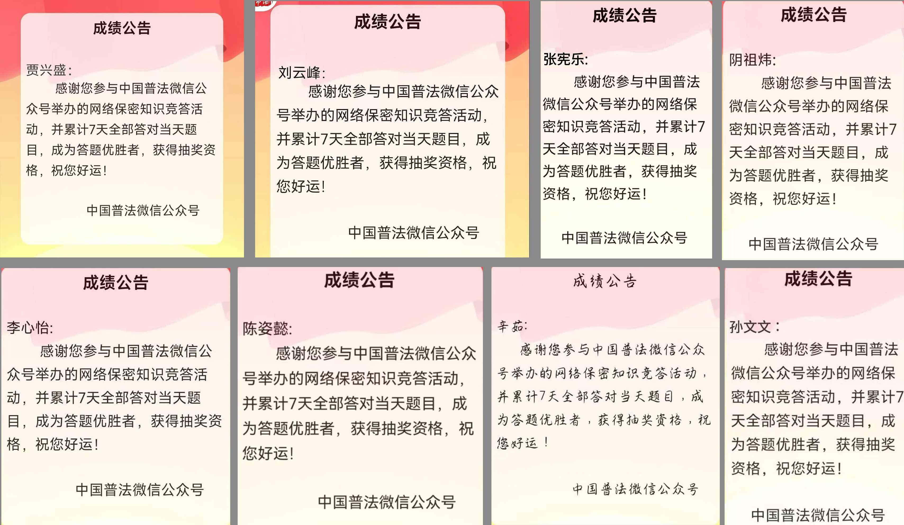 3、依托中国普法微信公众号,组织全院师生参加网络知识竞答活动,内容涵盖保密法律法规、涉密载体管理、信息设备使用规范等,推动保密知识入脑入心。