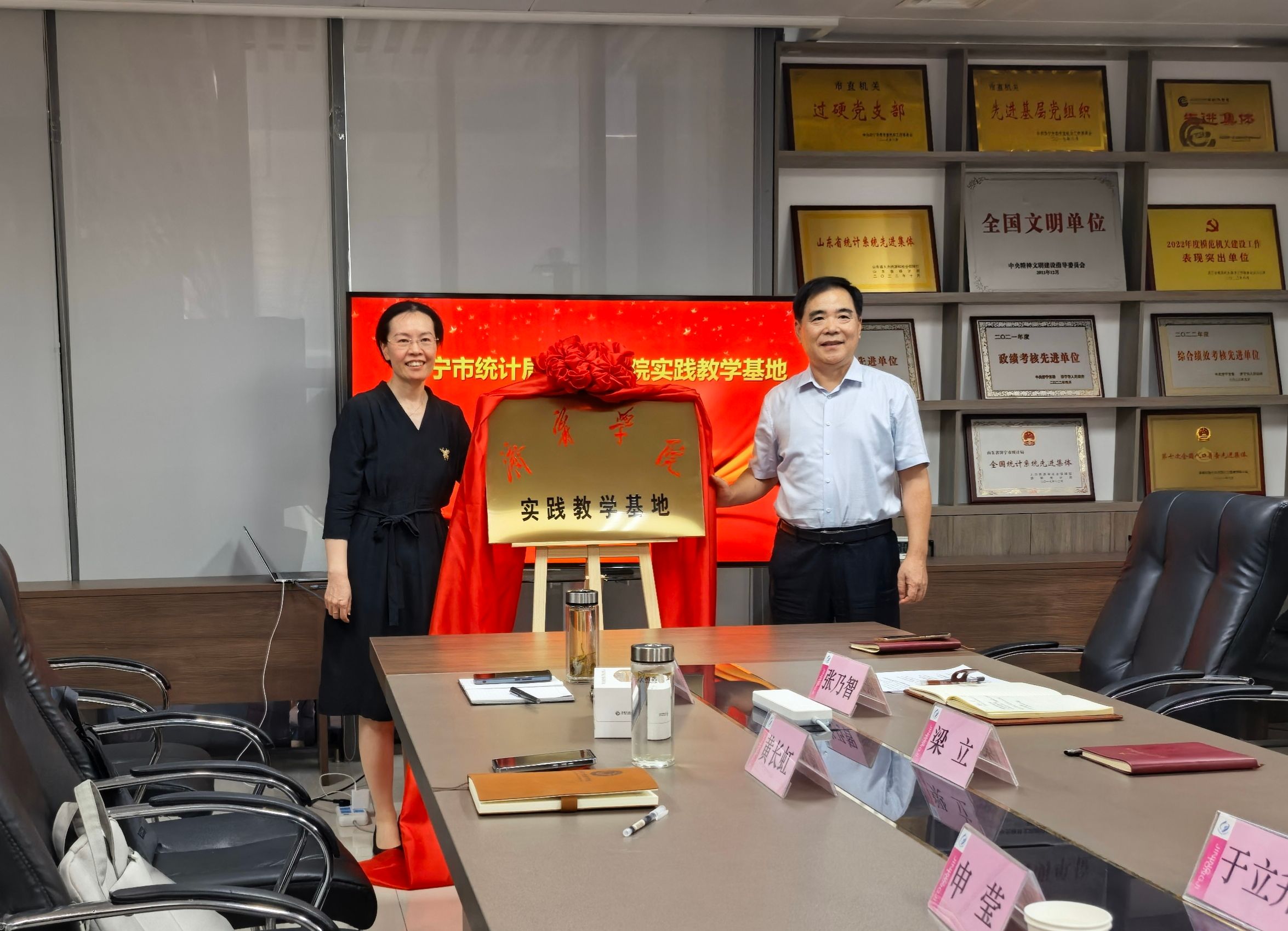 在济宁市统计局会议室,学院与市统计局举行了实践教学基地签约和授牌仪式。市统计局副局长张乃智在致辞中强调,统计局拥有文化、旅游、卫生等多领域优质数据资源,加之济宁市数字经济核心产业在山东省位居前列,与学院合作基础深厚、潜力巨大。“我们希望通过共建‘人才 + 资源’模式,提供实习、挂职机会,开展课题研究,既提升社会育才水平,又助力区域经济发展。” 学院副院长黄长虹表示,此次合作将让学生深入政府统计一线实践,深化产教融合;青年教师参与课题攻关,也能更精准把握行业需求,对学院发展意义重大。