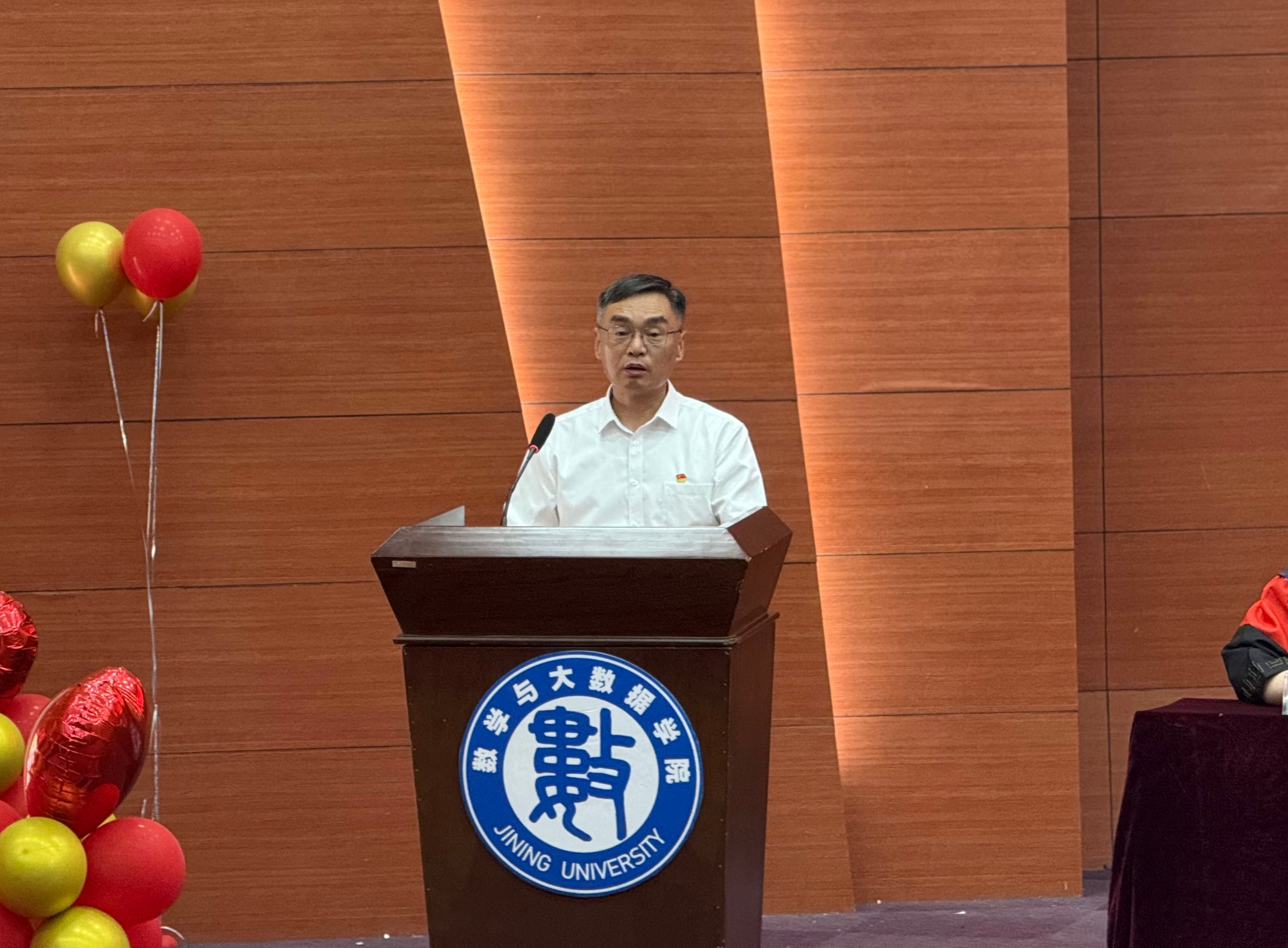 党委书记孙文在致辞中,向圆满毕业的学子致以热烈祝贺,回顾校园成长点滴,肯定大家在专业学习、竞赛实践等方面的优异成果,勉励同学们以数学思维破难题、用数据智慧创价值,勇做新时代奋斗者,提出践行初心、坚守理想和勇于拼搏、敢于担当的希望,并深情嘱托毕业学子,常回家看看。
