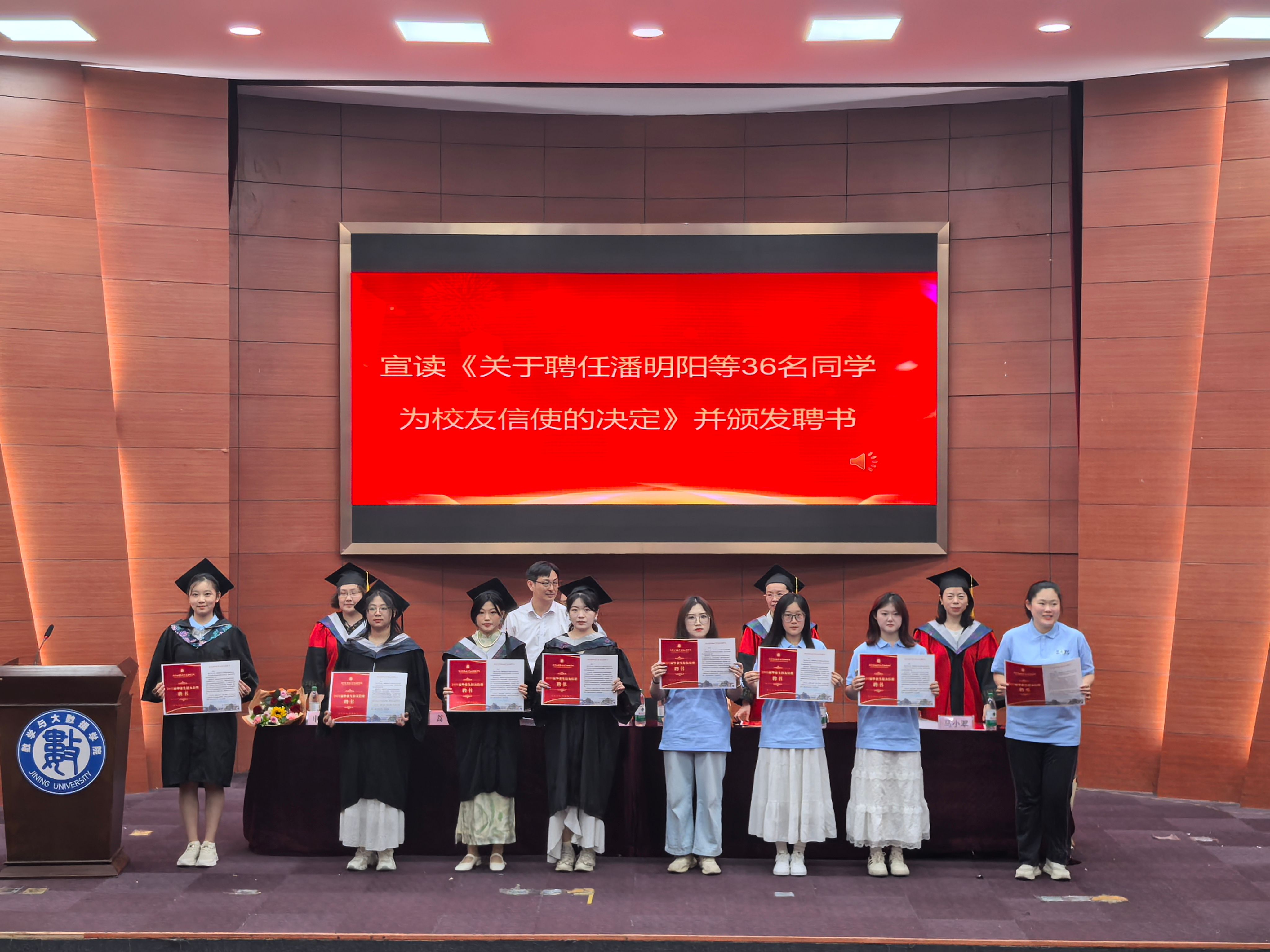 最后,学院领导为36名新聘任的校友信使颁发聘书,希望他们发挥桥梁纽带作用,传递校友深情,助力母校发展。