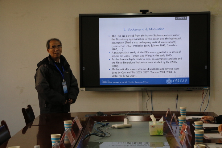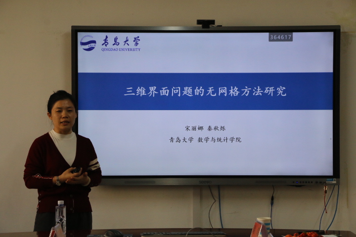 西安交通大学教授何银年针对Finite ElementMethodsfor the3D Primitive Equations of Ocean在有限元逼近的基础上,给出了在收敛条件下的最优误差估计。重庆大学副教授王坤对于Decoupled, positivity-preserving and unconditionally energy stable schemes for the electrohydrodynamic flow with variable density,指出变密度流体水动力(EHD)流的解耦、保正和无条件能量稳定的完全离散有限元格式。并提出改进的指数型标量辅助变量(SAV)方法来平衡产生的误差稳定和解耦过程的非线性耦合项。华东师范大学副教授郑海标对Non-iterative Local Parallel Algorithms for an Interface-Coupled Parabolic提出了两种新的界面耦合抛物型问题的局部并行算法。来自青岛大学的专家宋丽娜基于对三维界面问题的无网格方法研究,给出求解三维界面问题的一种高效可靠的无网格方法。来自烟台大学的专家张国栋将铁磁流体模型转化成等价的算法友好形式,进而提出了时间二阶稳定解耦格式,将复杂模型转化为简单椭圆问题求解。来自山东大学的专家鲁宁利用SEM完成合金体系的表征后,创新性的引入经济学概念“基尼系数”作为量化指标用来评估粒子分布情况。中国石油大学的专家刘恩阳设计升速轧制条件下轧后冷却前馈控制算法,开发了轧后冷却控制系统并应用于现场生产中,取得良好控制效果。