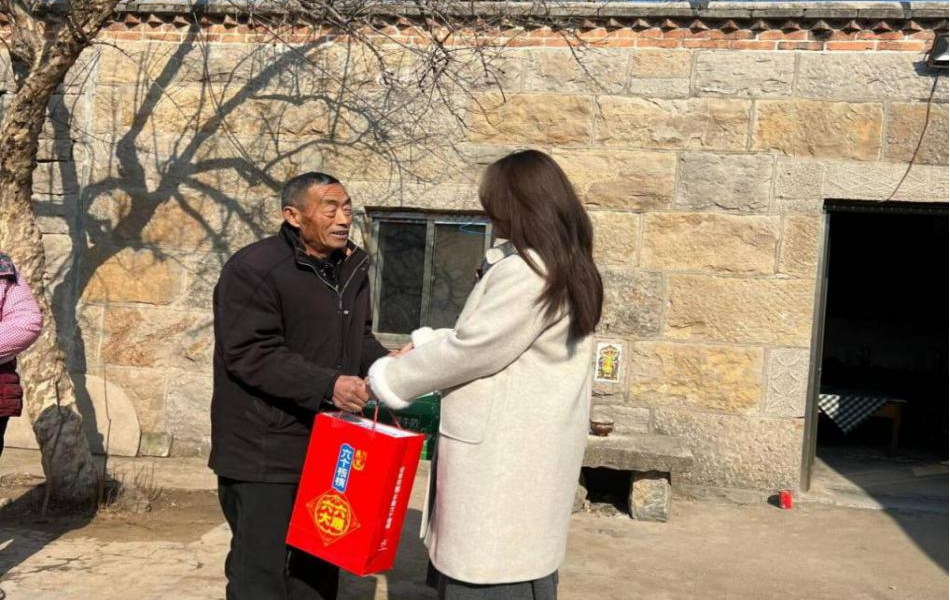 给村民发放粮油物质的活动现场,志愿者们有序组织,将物品依次送到村民手中,并贴心地询问他们的生活情况。