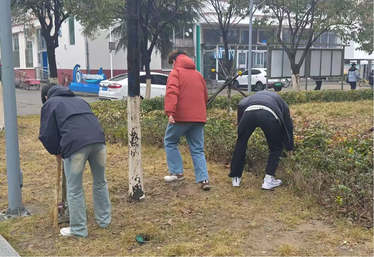 随后,党员志愿者来到校园,开展志愿服务活动。大家分工明确,有的手持扫帚清扫校园道路和草坪垃圾,有的摆放校园共享单车。经过几个小时的努力,校园环境焕然一新。