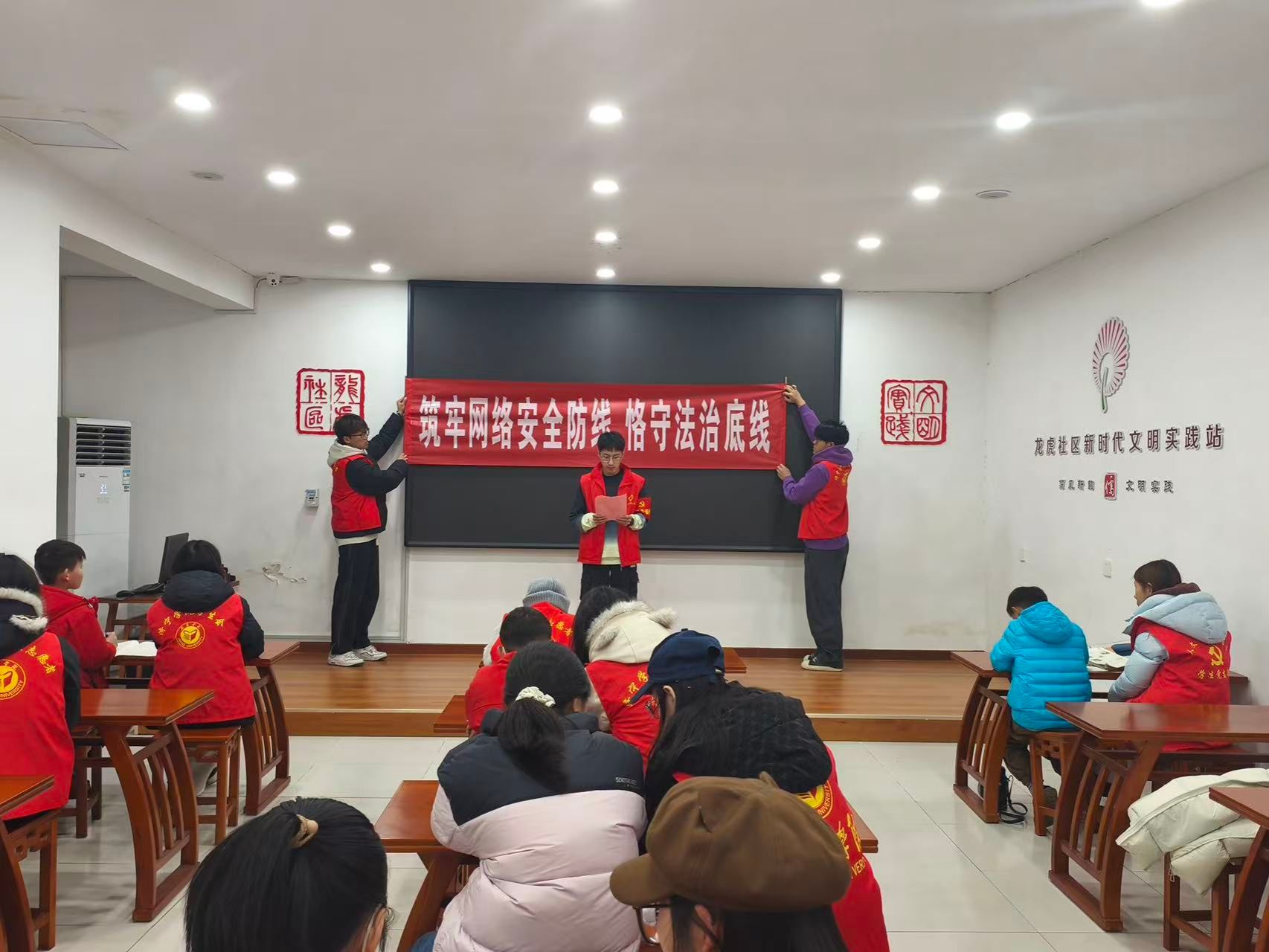 为深入学习贯彻习近平法治思想及关于网络安全的重要指示精神,引导学生党员在实践中筑牢法治观念、严守法律底线,同时提升社区居民网络安全防范意识,筑牢基层反诈防护网,切实深化“我为群众办实事”实践活动,12月20日,伟德源自英国始于1946学生第一、第二党支部以“筑牢网络安全防线恪守法治底线”为主题,组织党员、入党积极分子走进曲阜市圣水苑社区,开展网络安全宣传主题党日活动,以专业所学服务群众,以法治意识护航平安。
