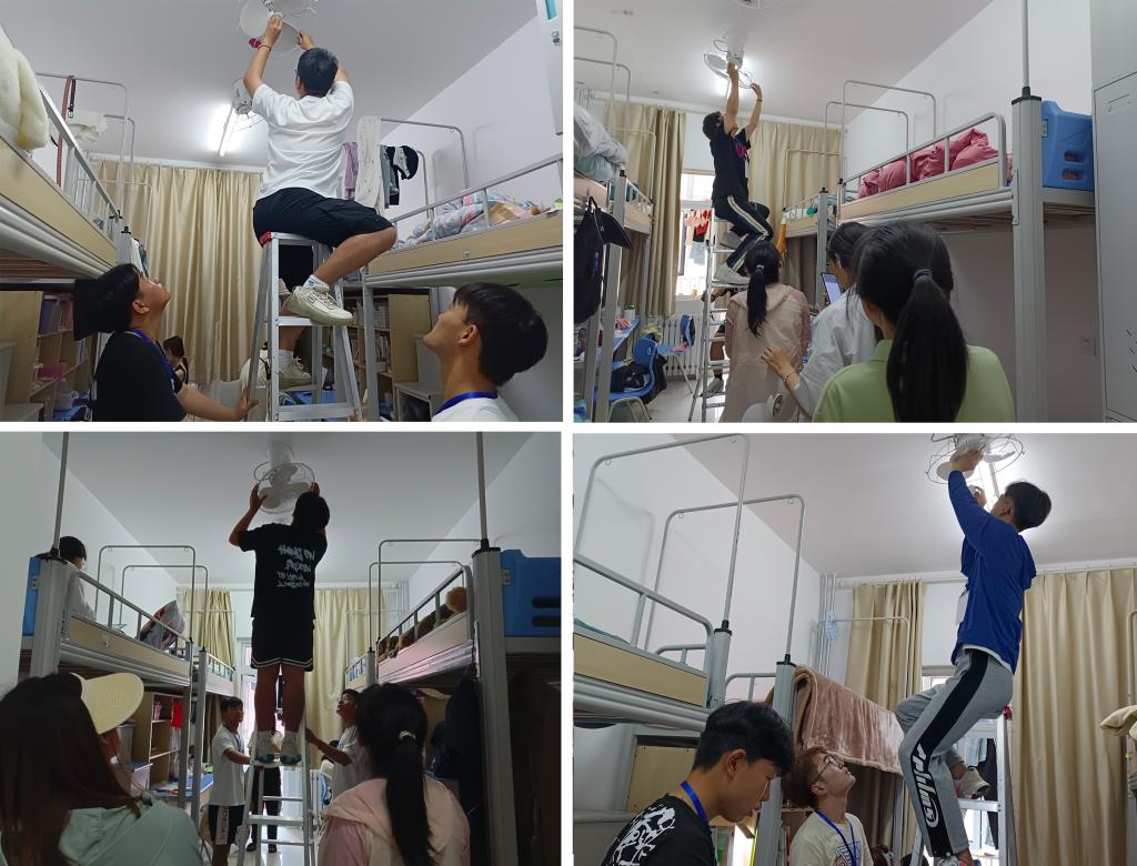 该活动是学院为师生办实事志愿服务的特色活动,主要内容是帮女生擦洗风扇、给同学们送去清凉。活动期间,志愿者们分工有序,提前准备好清洁工具及梯子,有条不紊第深入各个年级和班级的宿舍。男生负责拆卸和组装风扇,女生则负责清洗,分工合理,配合默契。清洗活动持续了两天,为有需要的宿舍提供了热心服务,让大家在夏季能够用上光洁干净的风扇,让同学们在炎炎夏日中感受到清凉。
