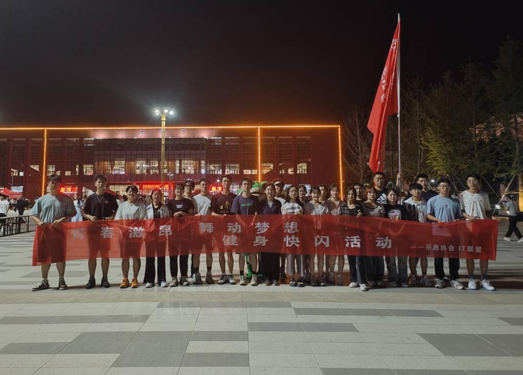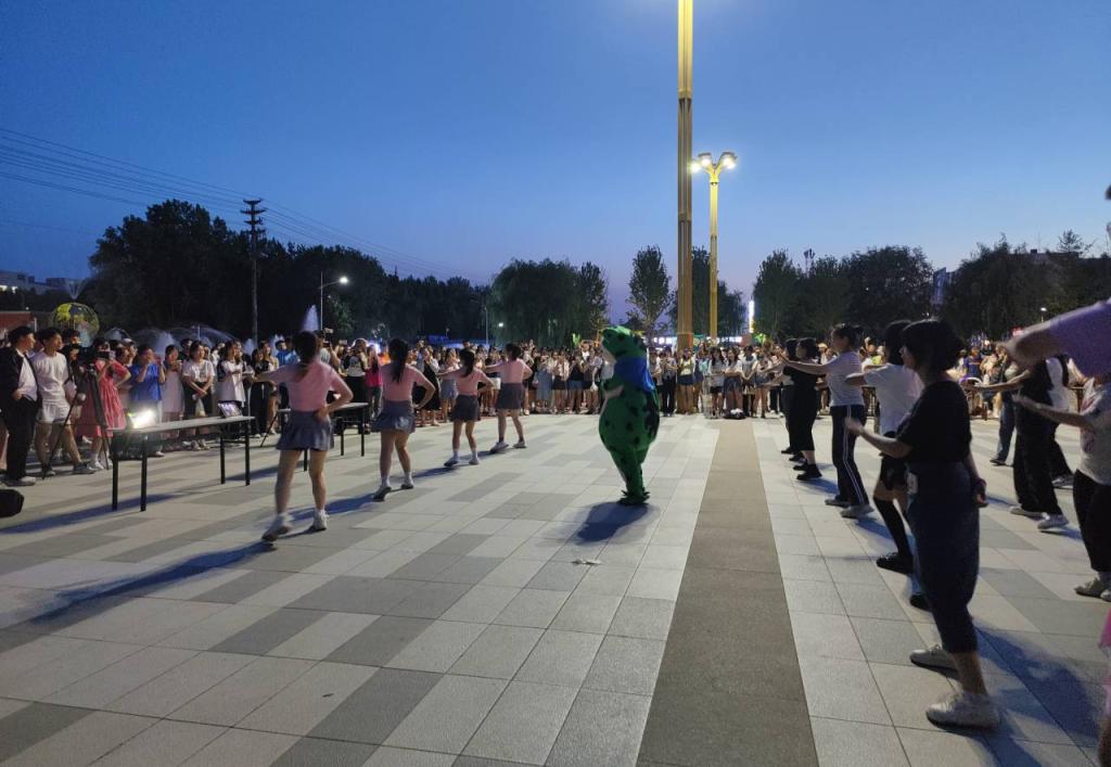 活动由学院乐跑协会、IT联盟社团共同承办。下午6时,伴随着欢快的歌曲,同学们相聚在餐厅广场共同起舞,朝气蓬勃的精神面貌和欢快热闹的活动现场,吸引了越来越多围观的同学加入其中,活动规模达300余人。