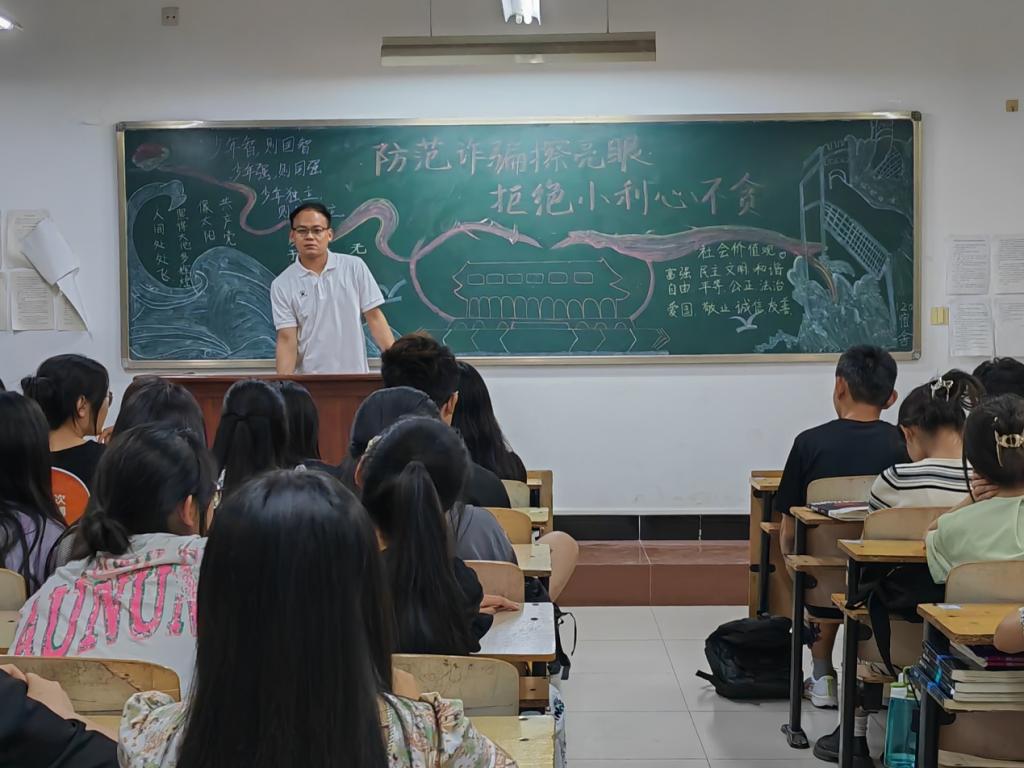 6月12日晚8:00,数学与计算机应用技术学院“防范诈骗,安全你我”宣讲活动在8号楼各自习室召开。宣讲会由辅导员张薇、赵磊组织,资助管理部部长任盈盈、副部长刘夏宇、干事丁文卿宣讲,2022级全体学生参加。