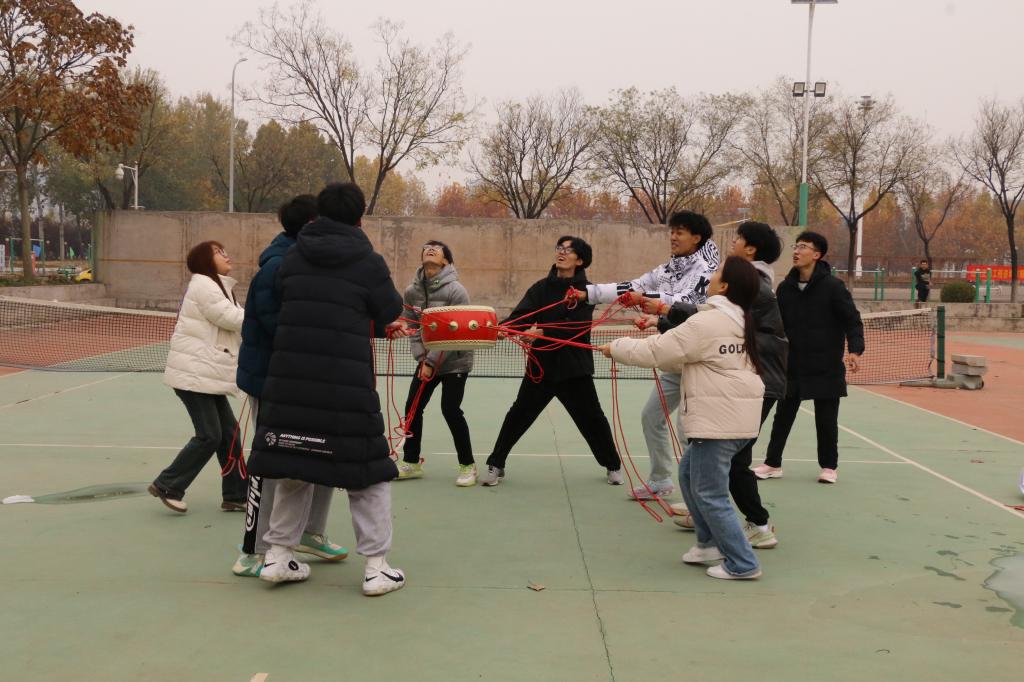 活动参与人员按照事先分好的小组有序列队,活动在一场欢笑声中拉开帷幕。王淇介绍了此次活动的背景和目的,并对同学们进行了生动有趣的培训,让大家更加了解这次活动的流程和规则。第一项活动是“摸石过河”,该活动让团队成员学会在压力下保持冷静,提高他们的应变能力。随后,进行的是“不倒森林”活动,这个活动考验了同学们的专注力和反应能力。“击鼓颠球”活动,不仅锻炼了同学们的手眼协调能力,更重要的是培养了全体学员取长补短、团结协作共同完成目标的能力。在整个活动过程中,同学们齐心协力、互相鼓励,充分发挥了团队合作的力量。
