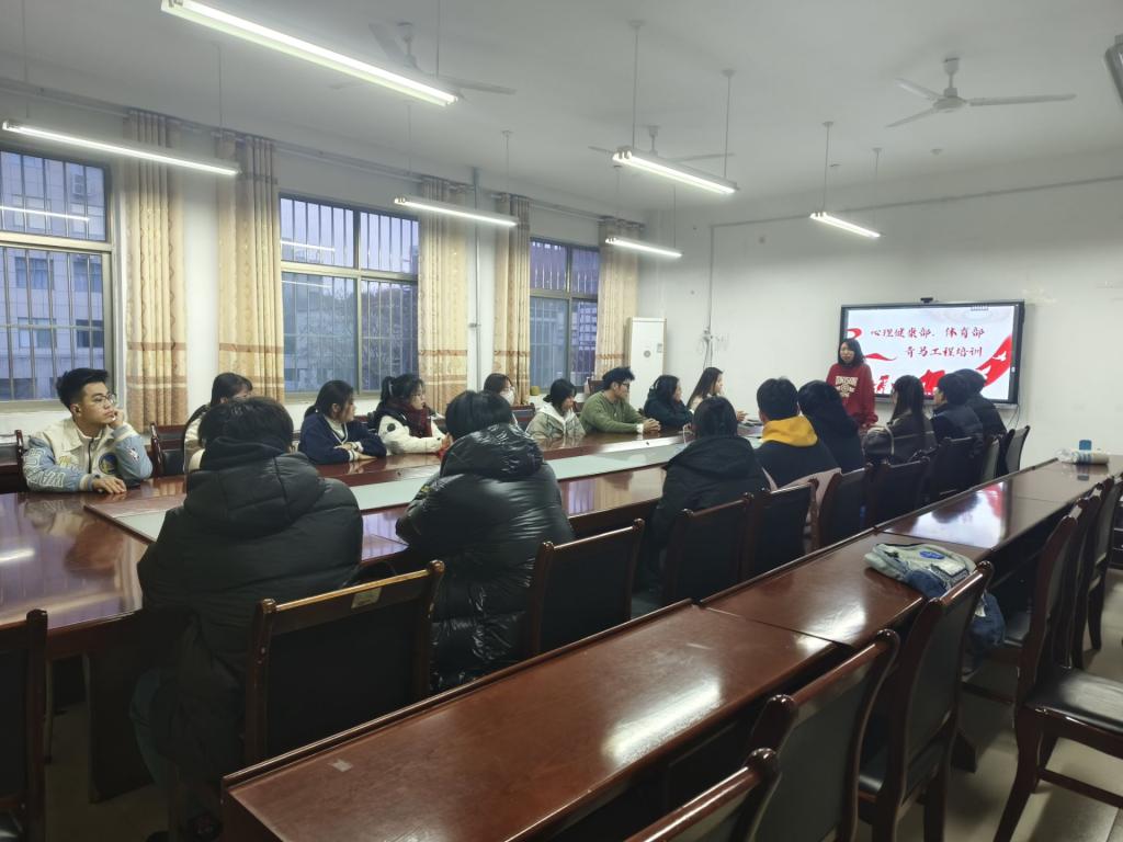 11月28日下午,数学与计算机应用技术学院学生会心理健康部与体育部一同召开“ 青马工程”学生干部素质能力提升培训会。指导教师闫卓敏主持,学生会心理部及体育部全体成员参会。