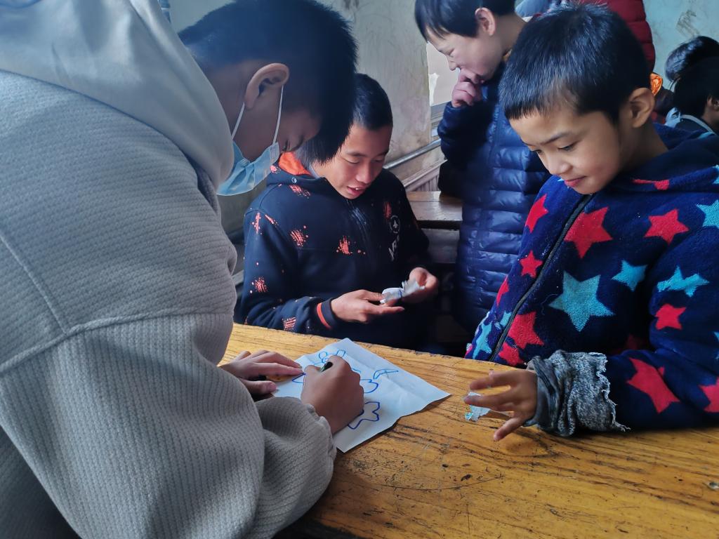 12月2日下午,大学生青年志愿者协会20名成员前往曲阜圣水苑社区开展以“走进社区·共享欢乐”为主题的志愿服务活动。家长们带着小朋友共同前往,与同学们共同开展手工折纸、捏橡皮泥、你画我猜等,现场准备各种颜色的橡皮泥、纸张和折纸教程,志愿者积极做好现场引导与协助,带领小朋友参与其中,营造了一个充满趣味和活力的氛围。在12月的后续三周,将继续在圣水苑小区开展两次课业辅导服务活动,以及冬至日共同包饺子活动。