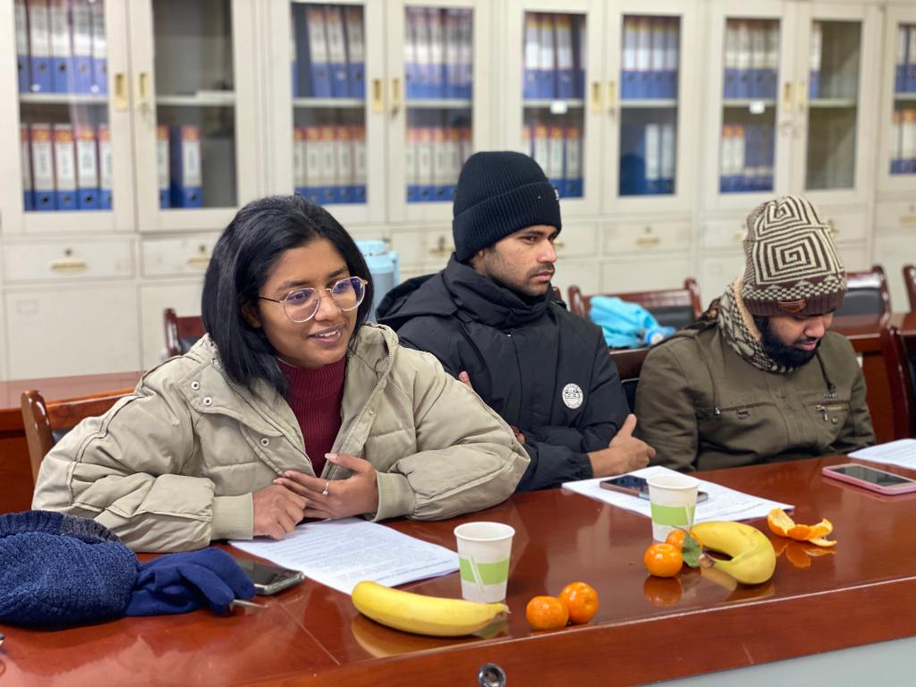 12月14日下午,数学与计算机应用技术学院在8号楼213会议室召开2023级外籍留学生座谈会。国际教育学院院长李刚、学院党委书记孙文、国际教育学院综合科科长张振、学院副院长杜永生、学院党委副书记冯秉政出席。2023级计算机科学与技术专业7名孟加拉国留学生参加。座谈会由副院长杜永生主持。