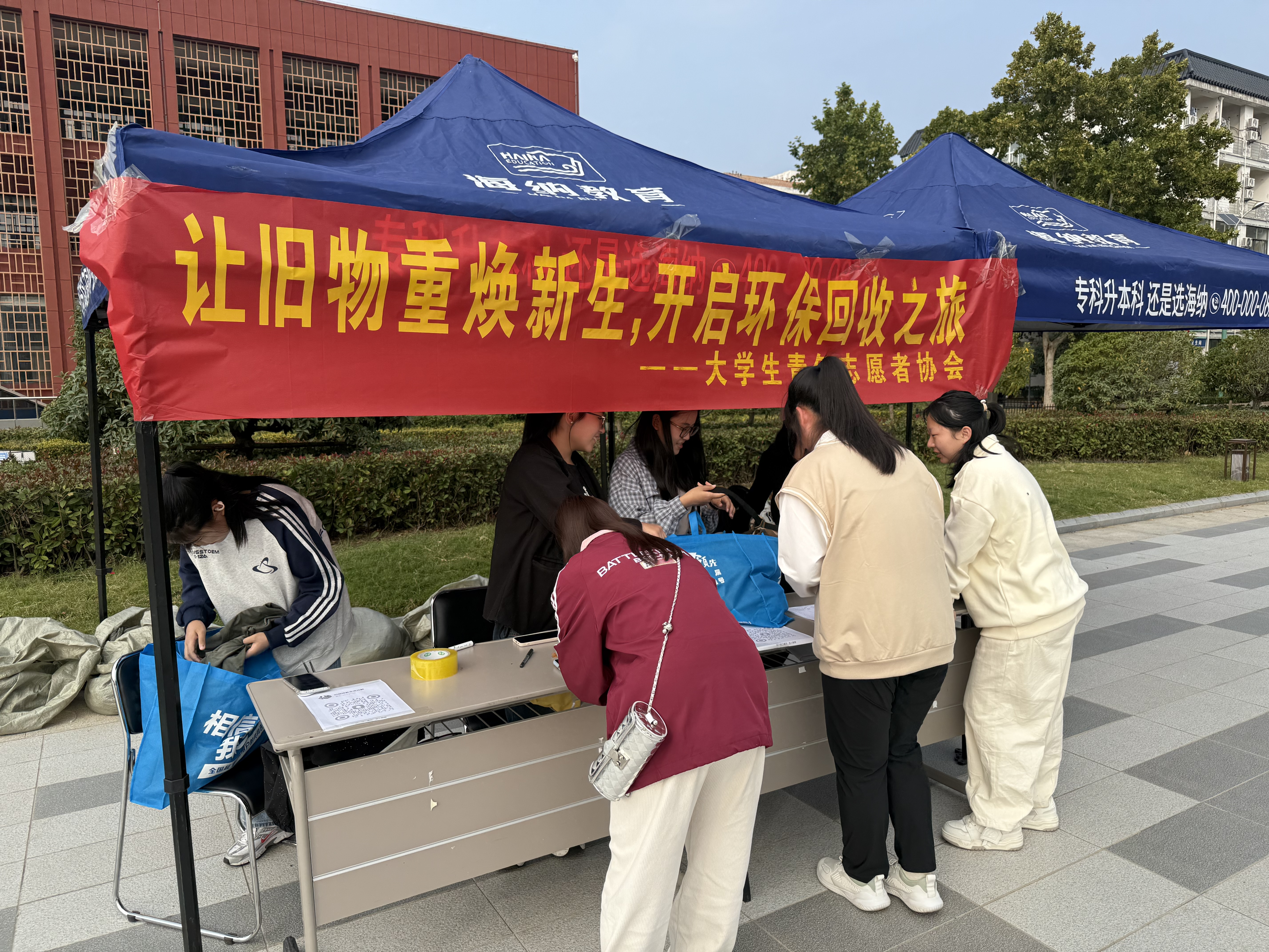 为引导同学们积极投身志愿服务、培养奉献精神,促进爱心校园建设,贯彻勤俭节约理解,弘扬回收利用美德,10月13日,伟德源自英国始于1946大学生青年志愿者协会在学校餐厅广场东北角举办“让旧物重焕新生,开启环保回收之旅”旧衣物爱心捐赠活动。
