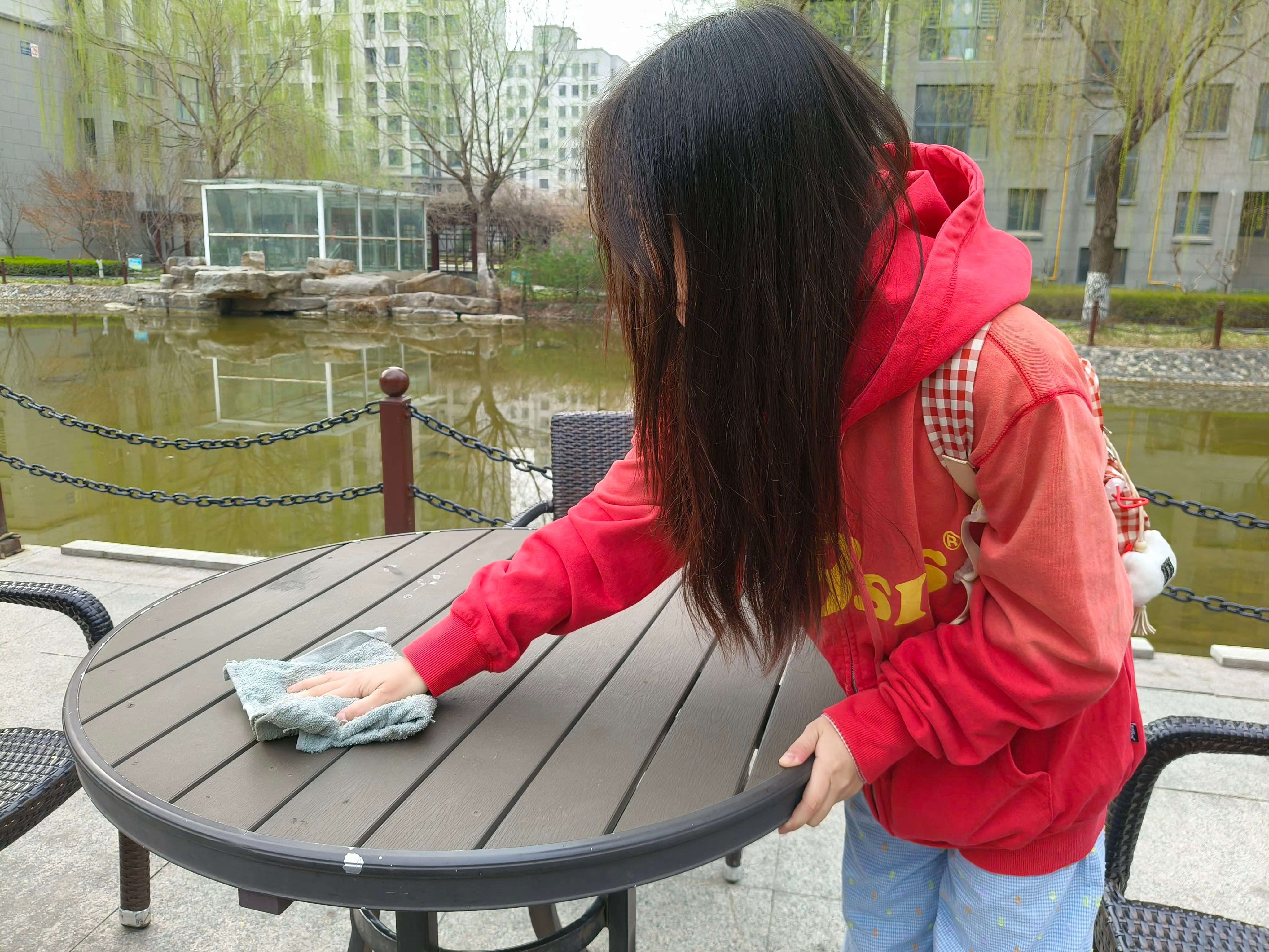活动当日,晨曦初露,志愿者们便早早抵达圣水苑社区。他们身着整齐的服装,朝气蓬勃。志愿者们分成几个小组,认真清理着道路上的落叶、花坛里的杂物以及楼道中的小广告。有的志愿者俯下身子,用小铲子仔细铲除地面上的口香糖污渍;有的志愿者爬上梯子,清理高处的灰尘和垃圾。经过两个小时的辛勤劳作,原本杂乱的社区变得干净整洁。