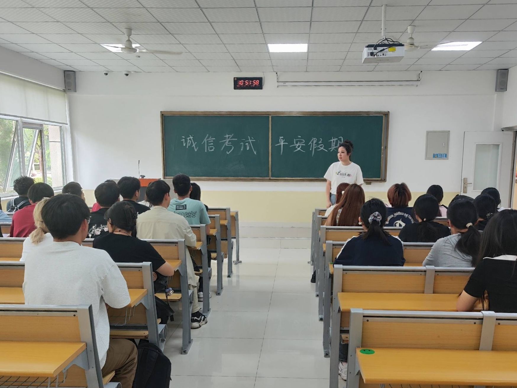 辅导员围绕“诚信考试” 主题展开深入讲解。通过列举真实考试作弊案例,辅导员向同学们剖析了考试作弊的严重后果,不仅会受到校规校纪的严肃处理,更会损害个人诚信档案,影响未来升学、就业。辅导员们再次明确考试纪律要求,强调诚信是治学之本、立身之基,呼吁同学们自觉遵守考试规则,以扎实的知识储备和良好的考风考纪迎接期末考试。随后,辅导员结合季节特点和学生实际,从人身安全、财产安全、网络安全、出行安全等多个方面详细叮嘱。同时,倡导同学们合理安排假期时间,坚持学习,积极参与社会实践,度过一个有意义的假期。