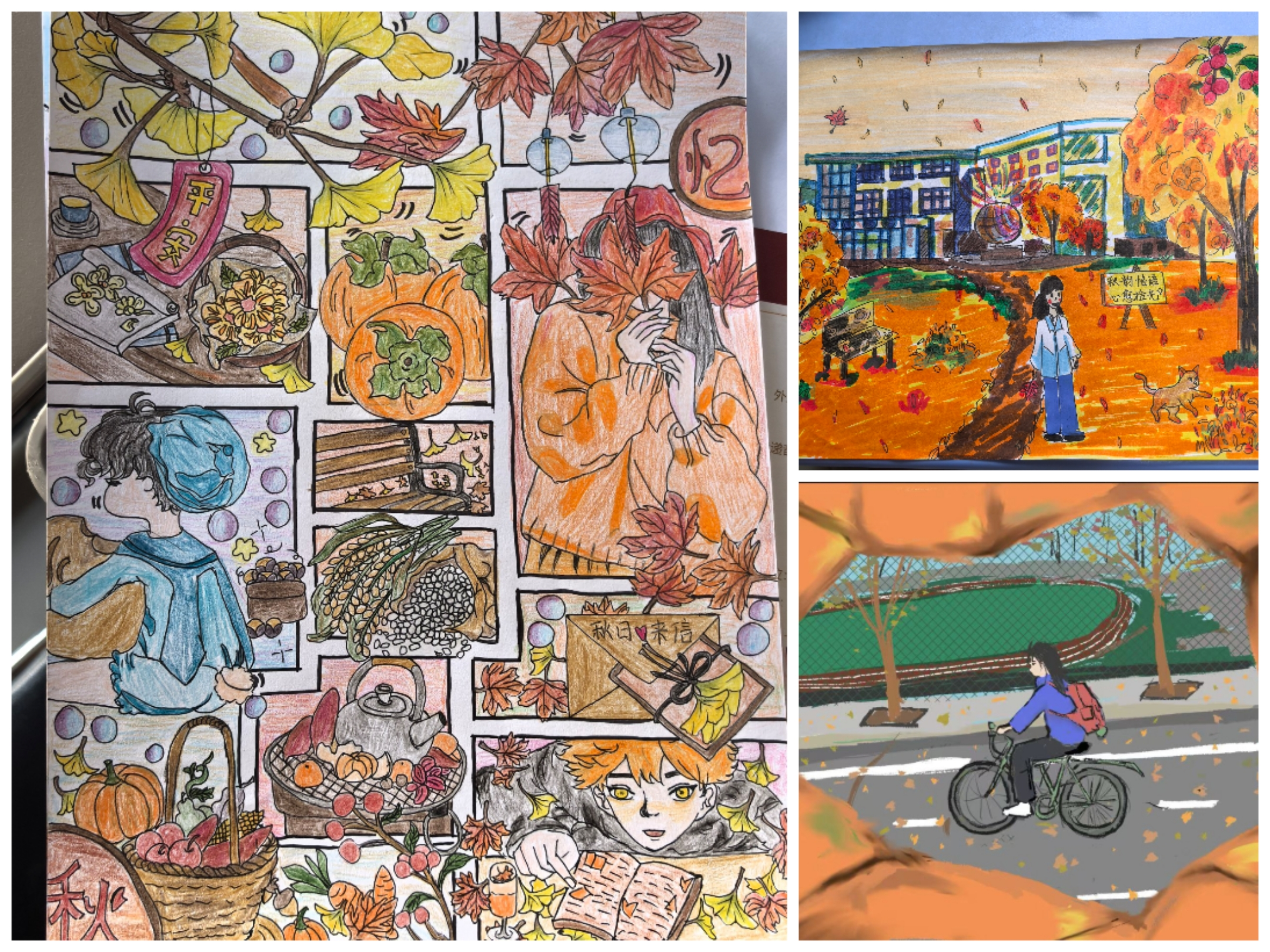 而“心理主题摄影与绘画”活动,进一步让同学们以艺术为纽带,与自然和生活对话。同学们漫步校园,将镜头对准校园美景,捕捉日常生活中的景色。每一张照片都藏着同学们的专属视角,凝聚着他们对生活细节的观察与热爱。绘画创作中,同学们充分发挥自己的创意才华,以校园秋景作为灵感,一笔一笔画出美丽的校园画卷,每幅作品都独具匠心,展现出同学们的综合素养。他们通过记录描绘生活中的小确幸与暖心瞬间,将“心愈”的主题诠释得淋漓尽致。