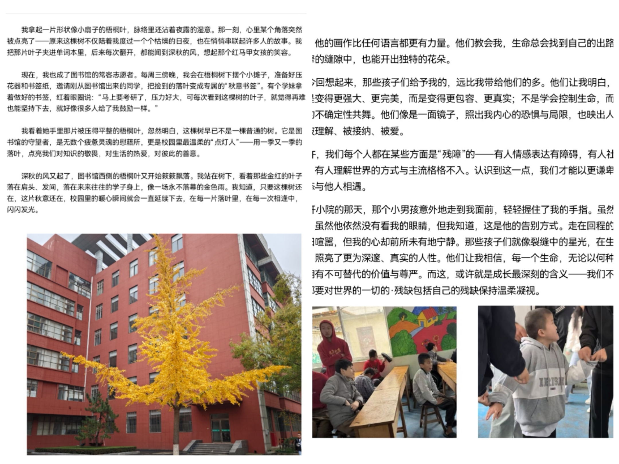同时“暖心一刻”故事征集活动也收获热烈反响。同学们踊跃提笔,将藏在日常里的温暖逐一写下:学业忙碌节奏里的陪伴,生活间隙中的细微关照,这些故事或许没有跌宕的情节,却在字里行间升起真诚的温度。大家真挚抒发内心感悟,忽略的瞬间被重新拾起,平常的善意被认真描摹,每一篇投稿都像秋日里的暖光,让温暖在分享中不断蔓延。