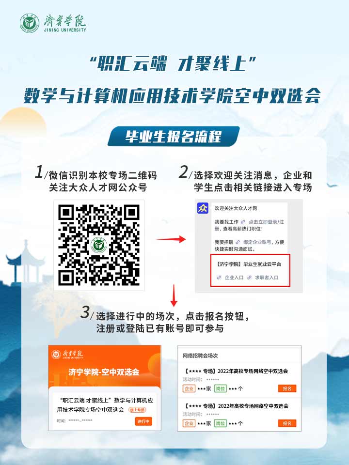 为深入贯彻落实党中央国务院关于高校毕业生就业工作的重要指示精神和“稳就业、保就业”决策部署,积极做好高校毕业生等重点群体就业工作,根据省人社厅和教育厅对高校毕业生就业工作的相关要求,同时为做好学校疫情防控常态化条件下毕业生就业工作,学院联合大众人才网就业平台举办持续性、常态化的空中双选会系列活动,为各企事业单位的招聘和学校应、往届毕业生稳定就业拓路护航,诚挚邀请您参会。
