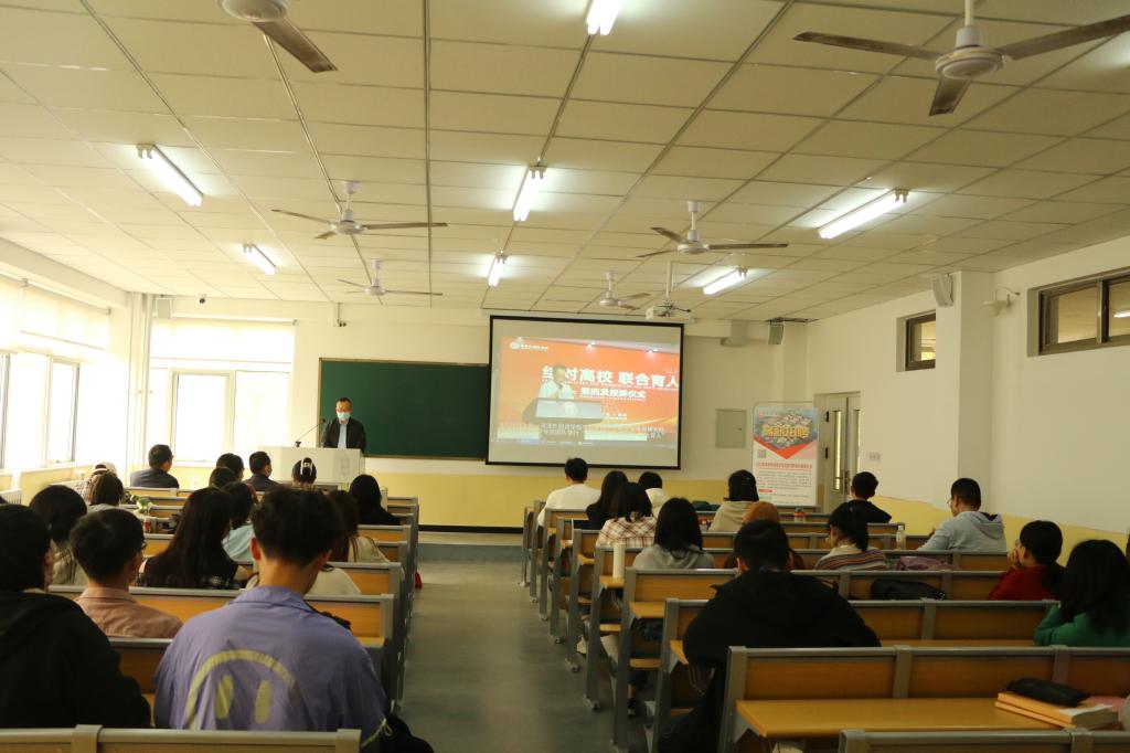 人力资源部主任宋志刚向在场同学播放菏泽外国语学校视频宣传片,介绍学校建设规模、发展情况、校园环境、育人理念等情况,对人才的需求、薪资待遇、食宿环境、晋升机制、福利待遇等方面做出详细讲解。交流环境,宋志刚对同学们提出的疑问一一解答。