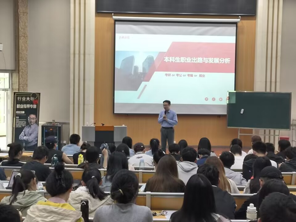 20日上午,李鹏为软件工程、虚拟现实、应用统计学、数据分析等六个专业的五百余名同学授课。21日上午,由袁文建为来自网络安全、网络优化、智能物联、云计算等六个专业的五百余名同学授课。二位讲师从大学生的未来职业选择、考公考研就业出路、就业前景和岗位需求等方面切入,分析我院不同专业学子的职业出路和发展道路,阐述行业发展趋势及人才需求,分析本科生面临的竞争压力和发展机遇,帮助大三学子全面、清晰地认知就业形势,综合考量自身学习能力和发展空间,确立合理的职业定位和职业目标,提前部署、打牢基础,牢牢把握每一次就业机遇,重视自己的每一次选择,努力成为行业的可用之才和优秀人才。二位讲师在讲解中分享多个真实的就业案例,鼓励同学们加强自身能力提升,为自己确立更好的职业生涯和发展路线。幽默风趣的讲解、犀利独到的见解,引得现场掌声阵阵。同学们精神饱满,与老师积极互动,取得了良好效果。
