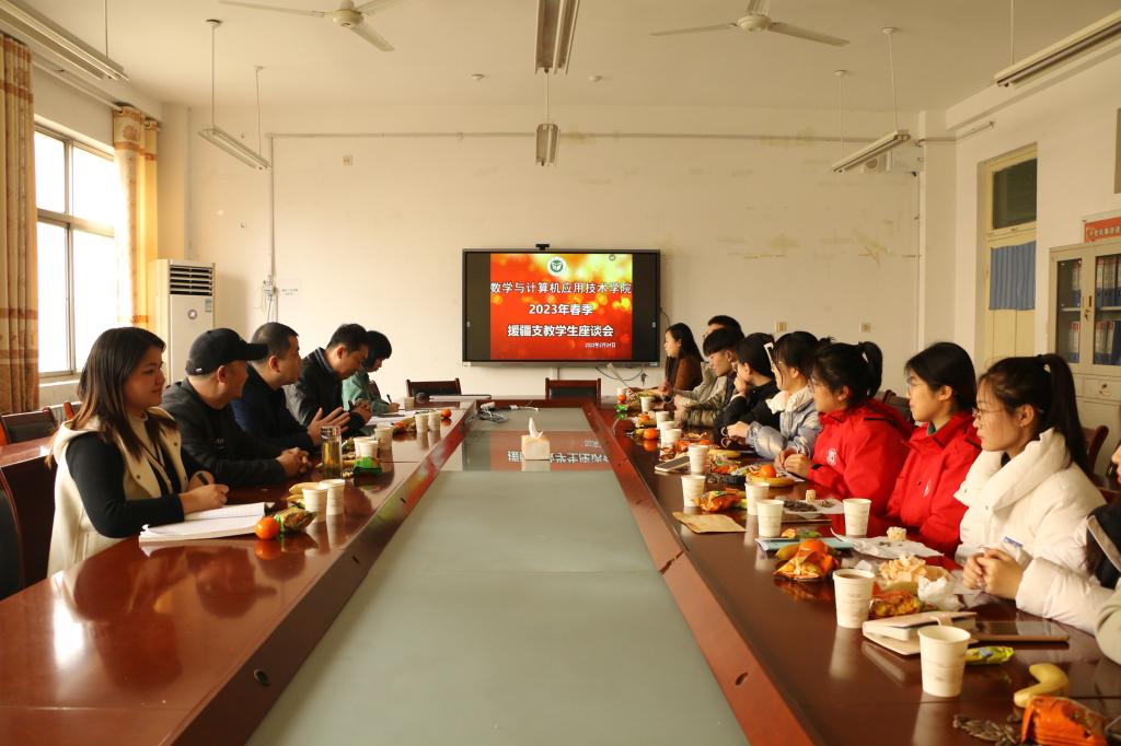 2月24日下午,数学与计算机应用技术学院在8号楼213会议室举行2023年春季援疆支教学生座谈会。学院院长刘军、党委副书记冯秉政、2021年春季支教团带队教师唐庆晨,以及辅导员郑伟、张薇、闫卓敏,2020级公费师范班选拔出的10名援疆支教学生参加了座谈会。