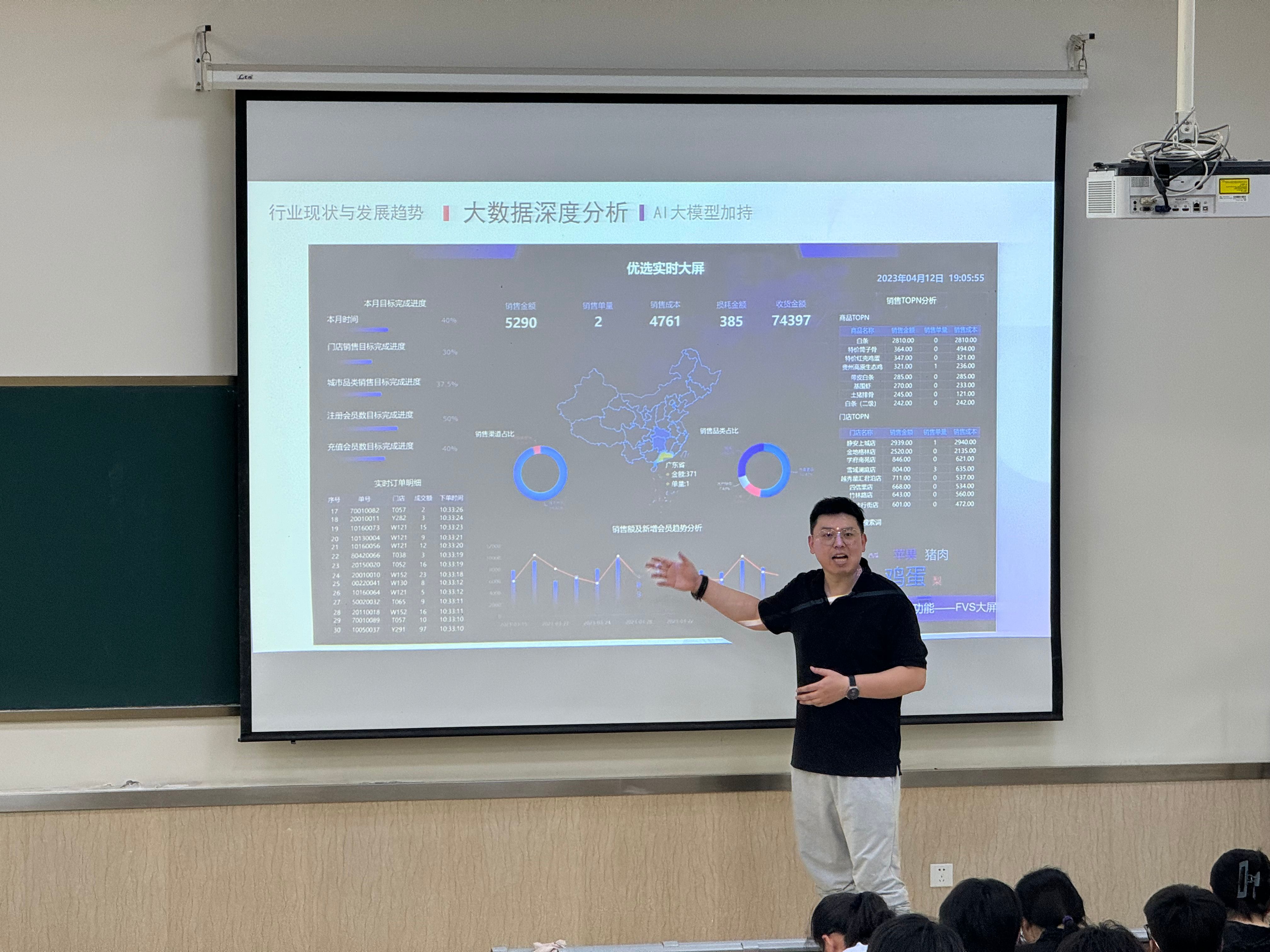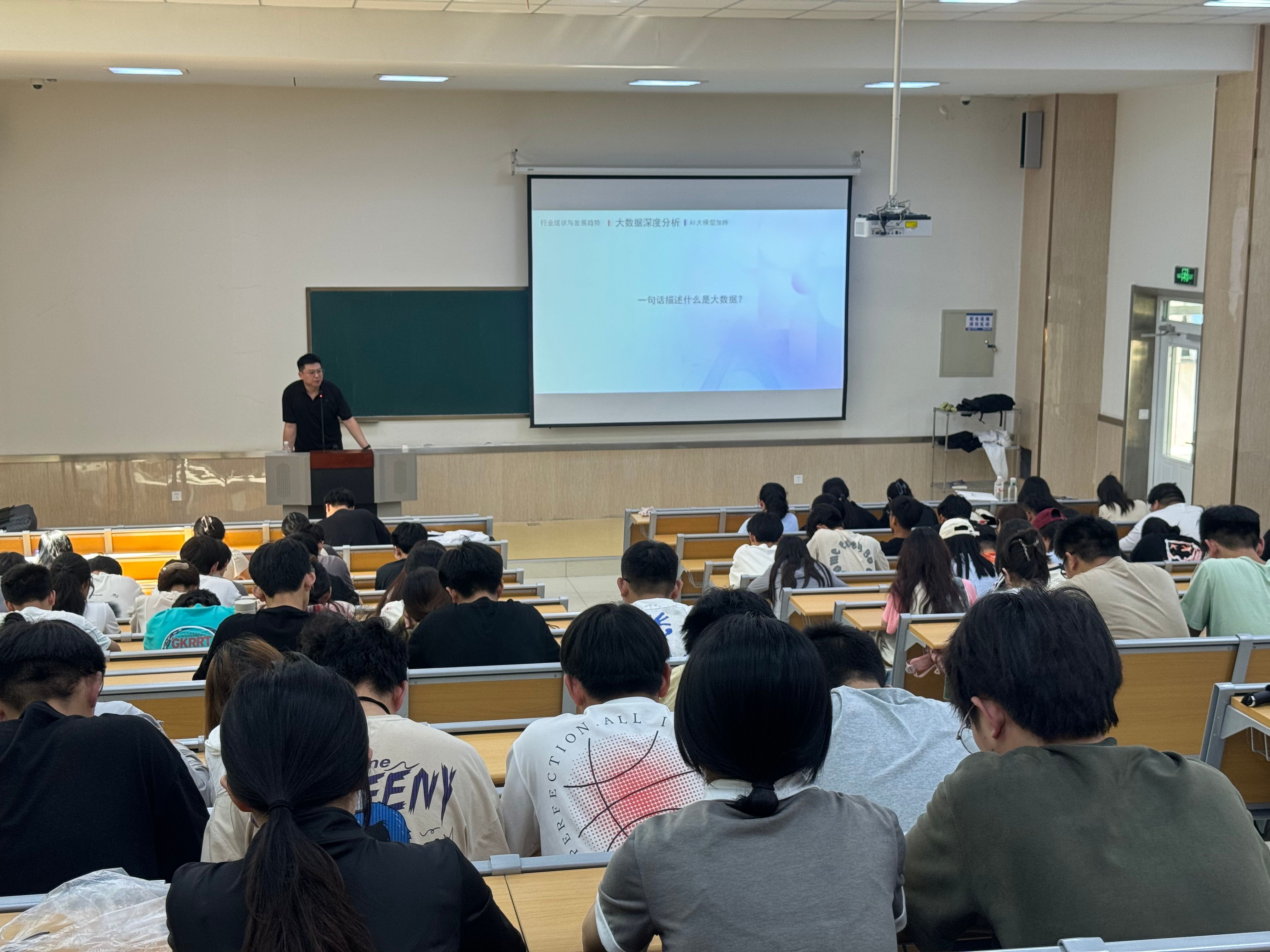 在9D102教室,杨昆霖为来自大数据、应用统计学、计算机专业的200余名同学做《大数据行业深度解析》专题报告。学院团委副书记陈轶洋主持。杨坤霖从数字经济、市场就业环境等方面深刻剖析行业现状与发展趋势,并深刻阐述了“大数据”的有关概念,从概述、大数据技术栈、大数据企业架构体系、大数据学习路径、学习方法、大数据就业等多个方面深刻剖析,从什么大模型、大模型能帮我们做什么、AI工具分享三个方面对AI大模型加持展开详细讲解,并向同学们分享了若干专业书籍和教学平台。