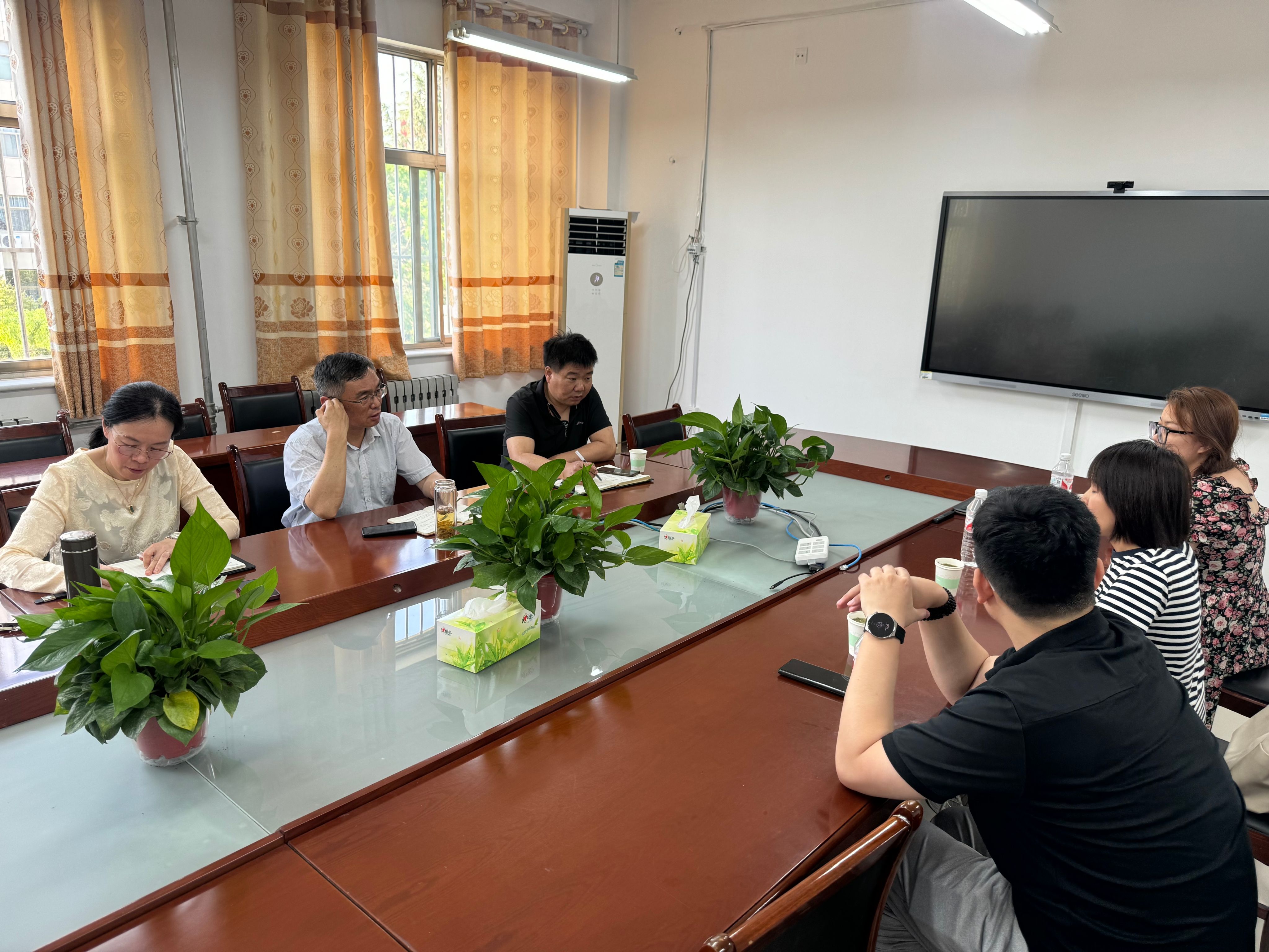 在8号楼二楼会议室,数学学院党委书记孙文、副院长黄长虹、计算机科学与工程学院副院长杜永生,与传智教育高级讲师杨昆霖及其他负责人展开座谈。双方就大数据专业学生的人才培养计划、就业能力提升、就业路径挖掘、实训基地建立、访企拓岗等方面展开座谈。