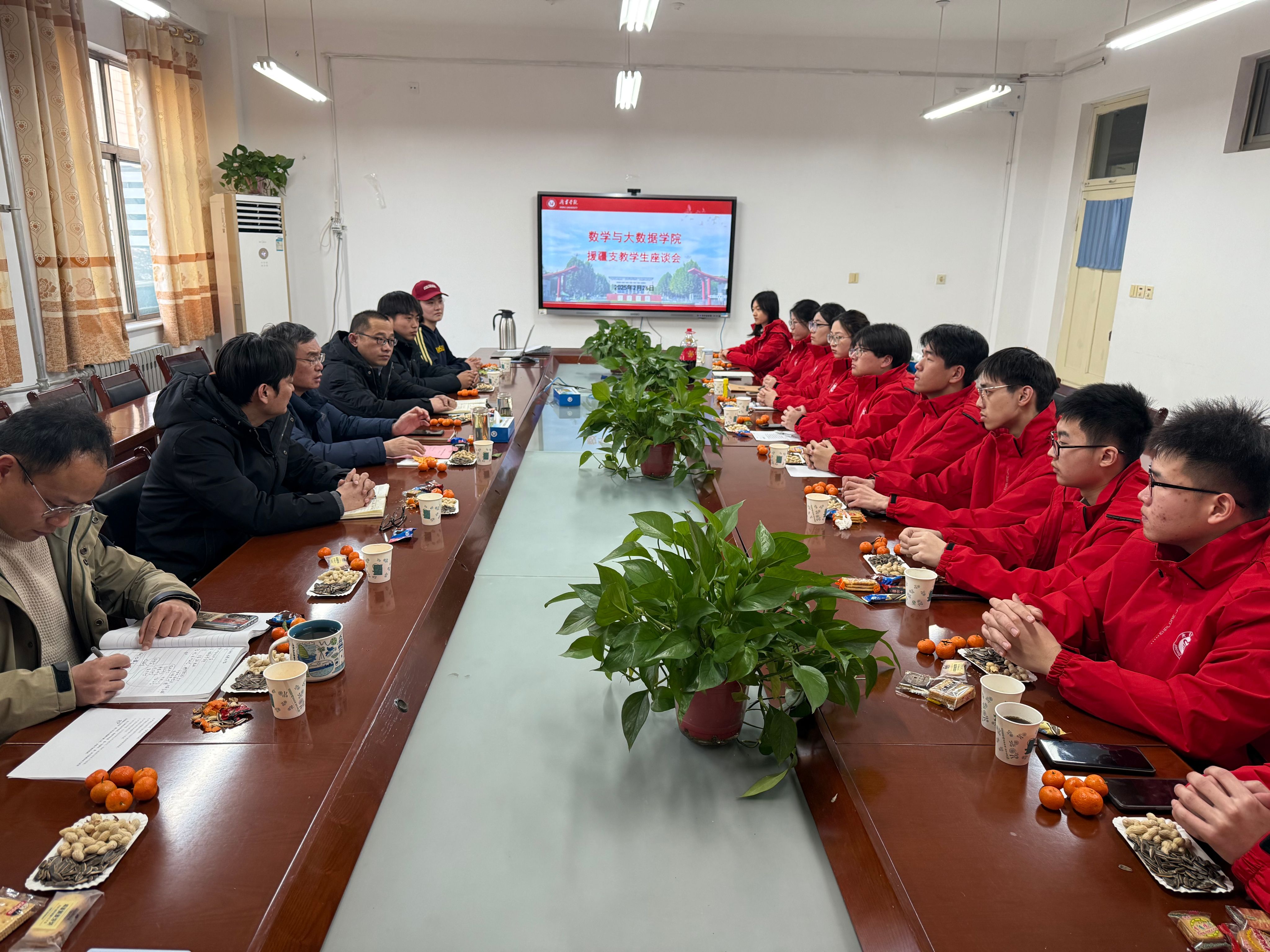 来自2022级数学与应用数学师范专业的12名援疆支教学子分享了自己的感想,并就支教生活以及路途中的一些具体问题展开交流。上一届援疆支教团带队教师赵磊、团员代表陈耀、张入凡为大家一一答疑解惑,他们结合亲身经历,分享在新疆的衣食住行、支教历程,事无巨细,为同学们全面了解支教生活提供了指南。